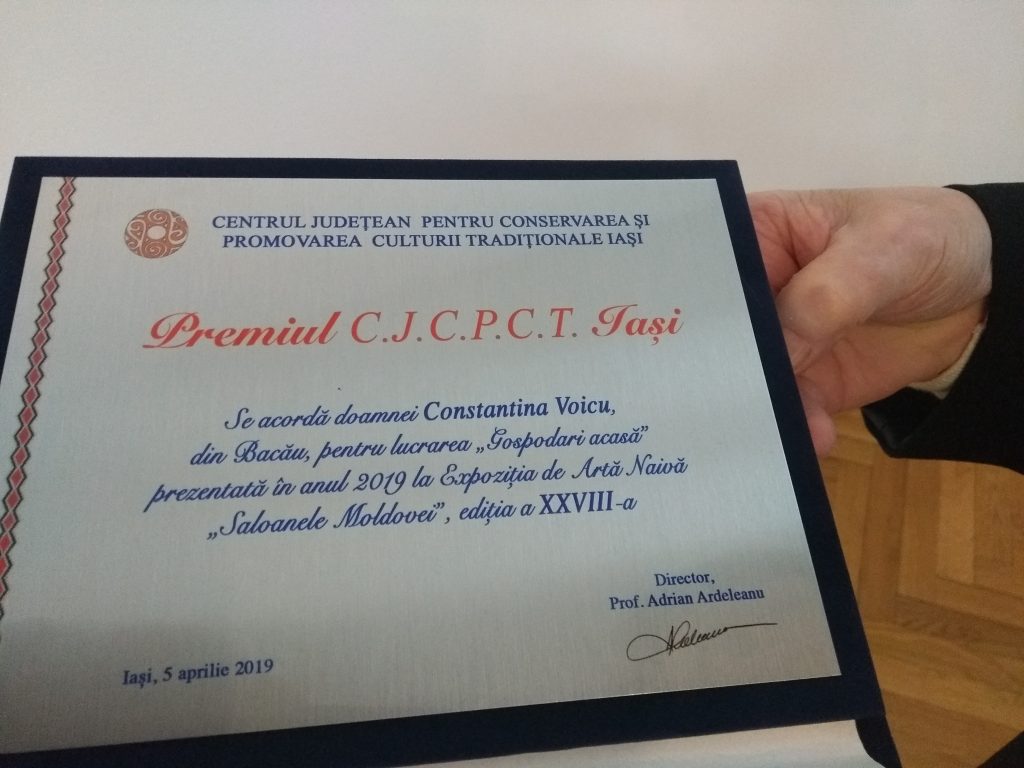Doamna Constantina Voicu, medic stomatolog de profesie, la ediția de anul acesta a Saloanelor Moldovei a obținut un important premiu – pentru lucrarea Gospodari acasă, lucrare despre care, în emisiunea de astăzi, ne vorbește – amintindu-ne și despre copilăria Domniei Sale, alături de frați, părinți, cei mai minunați oameni de pe pământ.