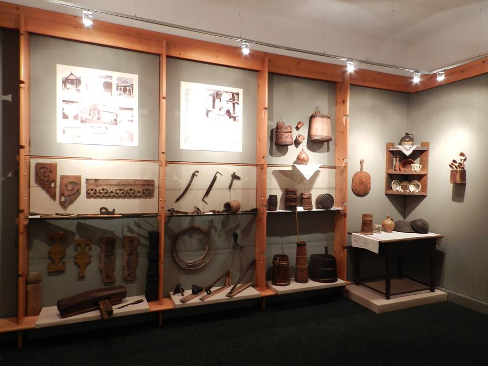 Vasile Diaconu – Sala lemnului – tipar de caș de la 1812, obiecte realizate de meșterul popular Nicolae Popa, obiecte legate de viața ecleziastică