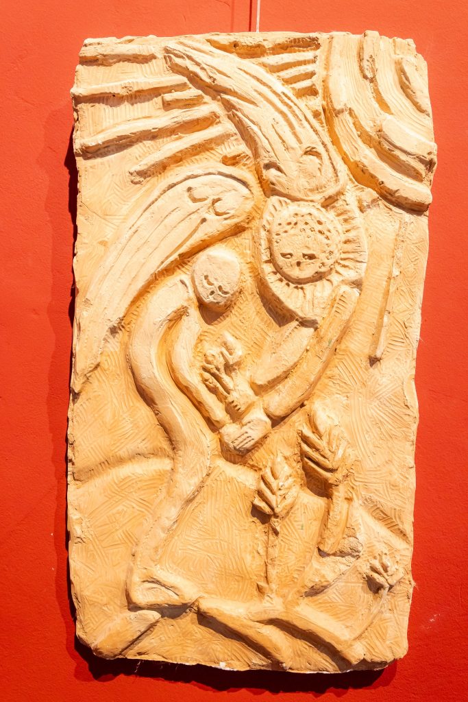 Lucrările expuse (basorelief, pictură, broderie) sunt făurite de către elevii Seminarului Teologic Ortodox „Sfântul Vasile cel Mare” Iaşi, respectiv de către artistul Emilia Avărvăroaiei.