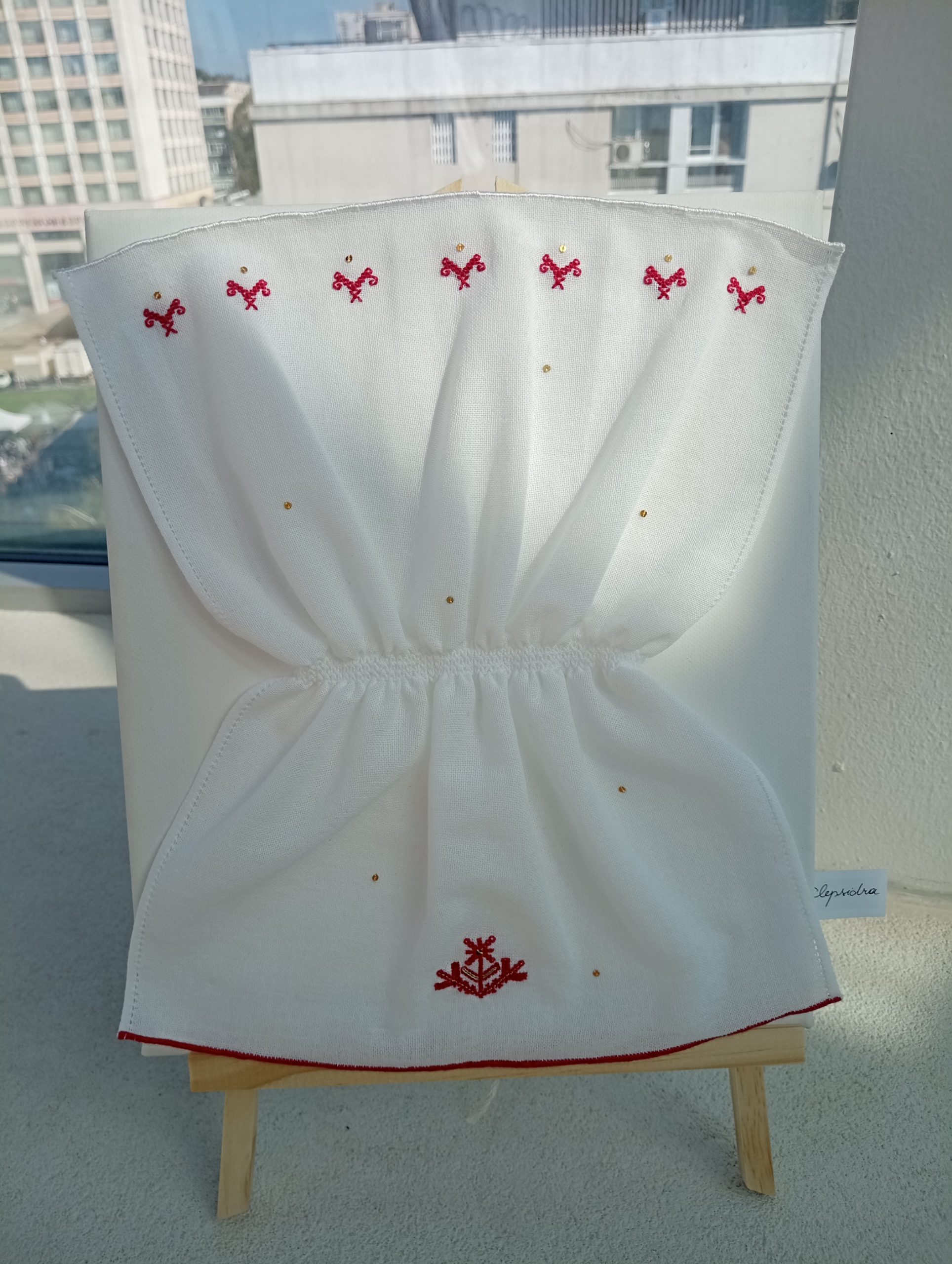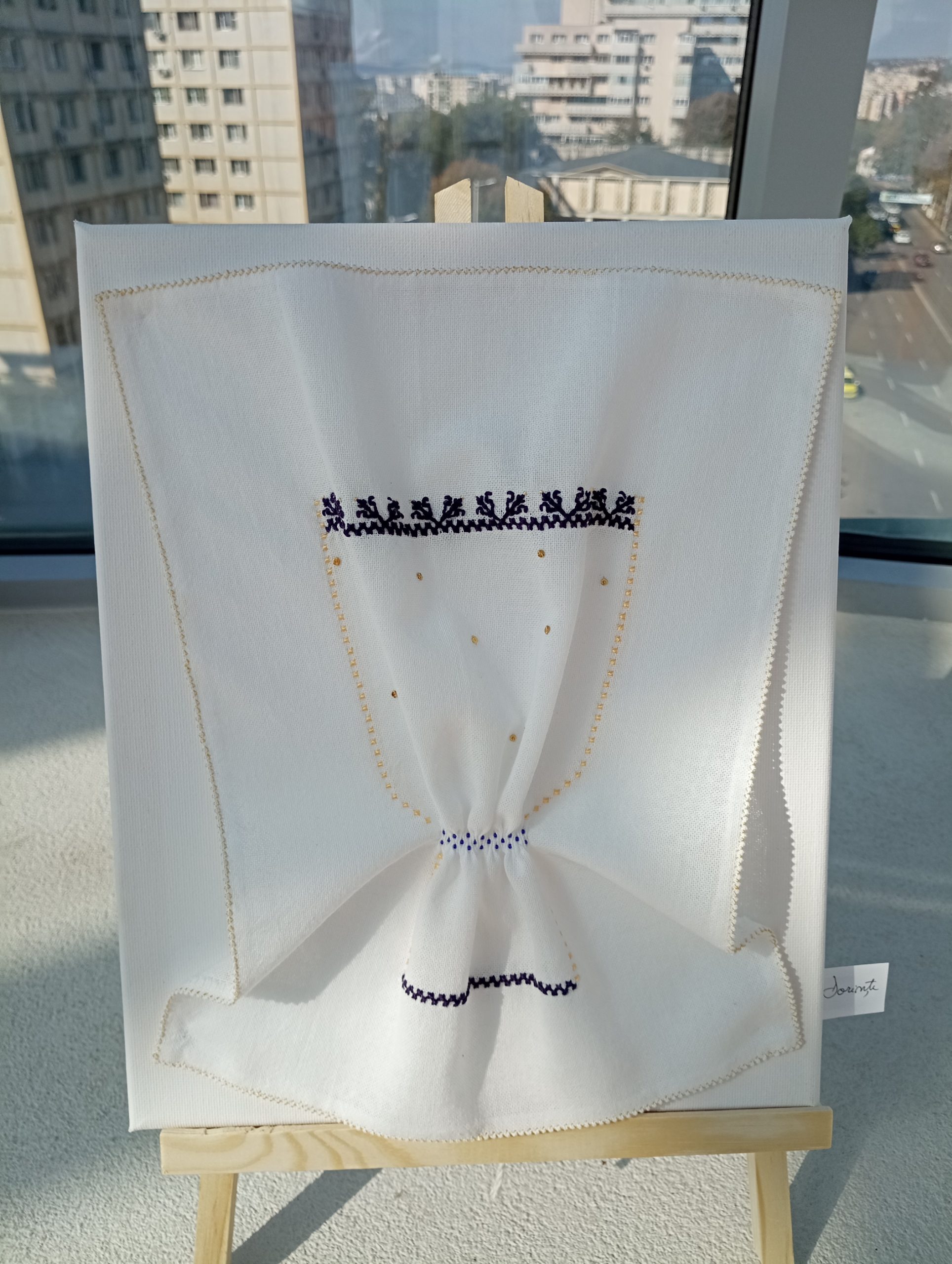 În centrul expoziției din cadrul atelierului „Pânza timpului” (sămbătă, între orele 11 – 13) din Sala Cupola a Palatului Braunstein, Iași, a fost expusă o cămașă femeiască de sărbătoare cusută în fir de mătase cu mărgeluțe din nisip (pe pânză industrială). Din următoarea secvență audio pe care o postăm, de la doamna profesor Carmen Cumpăratu aflăm amănunte despre această cămașă; de asemenea, interlocutorul nostru ne spune când, cum și în ce context a început povestea cusutului în viața Domniei Sale. Continuitatea atelierului organizat în ziua de sâmbătă (28 septembrie a.c.) este unul dintre obiectivele pe care și-l dorește a fi dus la îndeplinire, un alt subiect pe care-l creionăm cu doamna profesor Carmen Cumpăratu.
