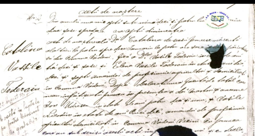 La începutul Primului Război Mondial, o tânără învăţătoare din Târgu Jiu se înrolează voluntar ca infirmieră de companie. Era Ecaterina Teodoroiu, născută Cătălina Vasile Toderoiu la 14 ianuarie 1894, în localitatea Vădeni, astăzi cartier în componența municipiului Târgu-Jiu, județul Gorj.