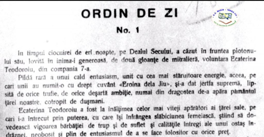 ECATERINA TEODOROIU – 100 DE ANI DE LA JERTFA SUPREMĂ PE FRONTUL DIN MOLDOVA, ÎN PRIMUL RĂZBOI MONDIAL