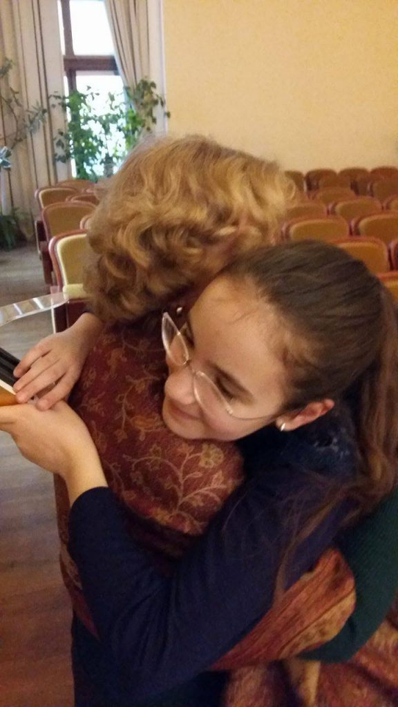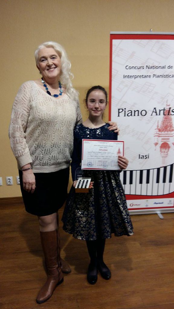 - Eva Garet mulțumindu-o d-nei prof. Mihaela Zamfirescu, după primirea Trofeului Piano Artis