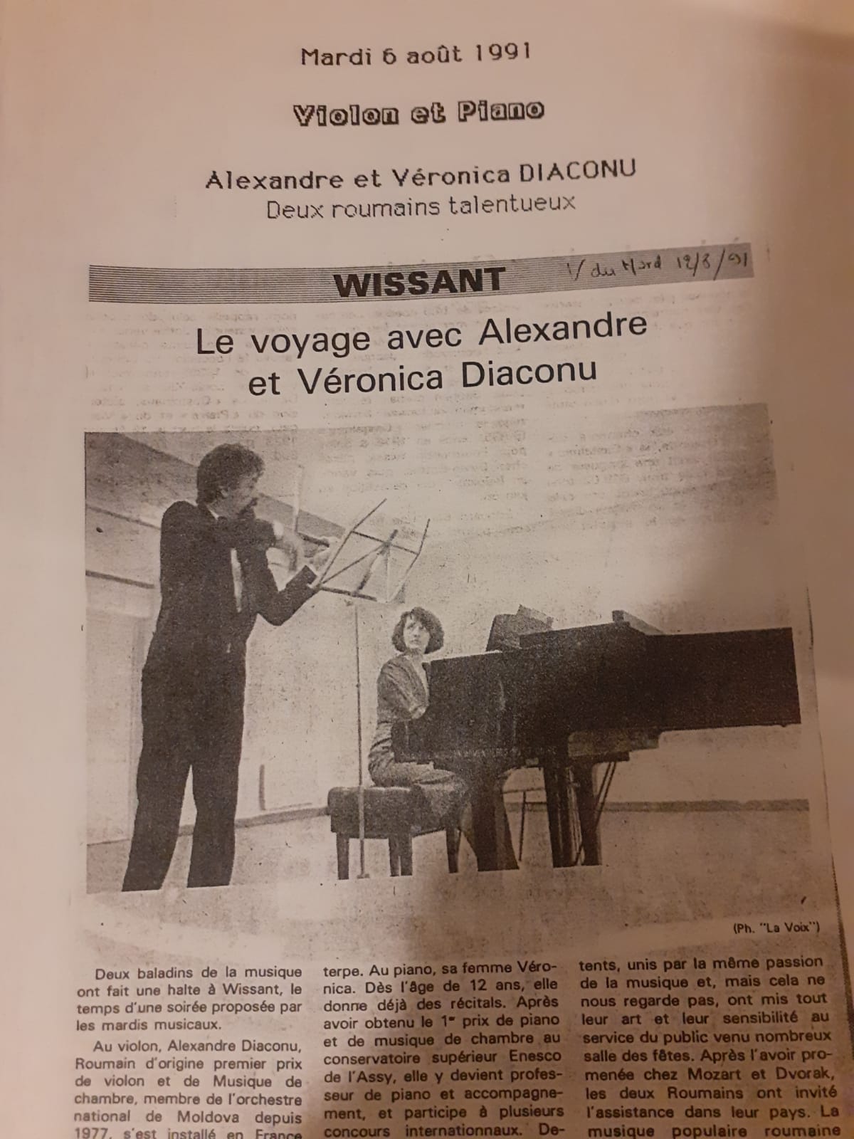 Violonistul Alexandru Diaconu face parte din Orchestra Simfonică din Lille, iar pianista Veronica Diaconu a continuat în Franța cariera didactică și cea de acompaniatoare. La Iași, au fost discipolii unor mari artiști și profesori, ca violoniștii Leonid Popovici, Ștefan Lory și Anton Diaconu sau pianistul Ioan Welt. Alex Diaconu a făcut parte din Orchestra Filarmonicii Moldova până în 1986, iar Veronica Diaconu a fost profesor acompaniator la Liceul „Octav Băncilă”, o mulțime din elevii cu care a lucrat fiind astăzi artiști consacrați.
