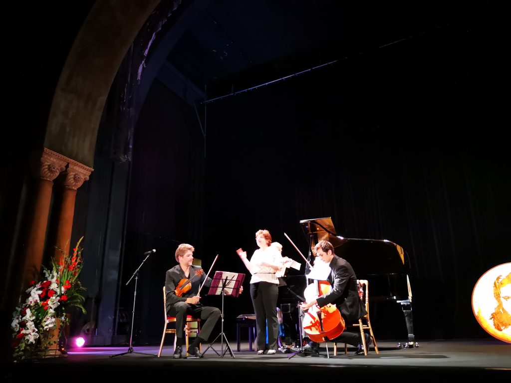 Astăzi vă invit la un concert desfăşurat în cadrul Întâlnirilor Muzicale Enesco, din octombrie 2018, în minunata Sală Bizantină a Palatului Behague, din inima Parisului, în Ambasadei României în Franţa. Primul din seria de trei a avut titlul Carte Blanche à la pianiste Dana Ciocârlie, ea însăşi româno-franceză prin formaţie, repertoriu şi apartenenţă, care i-a invitat alături de ea pe violonistul Nicolas Dautricourt, ataşat de repertoriul enescian cu mult înainte de a fi chiar invitatul Festivalului Enescu de la Bucureşti şi pe violoncelistul Aurélien Pascal, un muzician globe trotter de cea mai aleasă speţă, vom avea prilejul să îi cunoaştem pe fiecare în scurte interviuri.