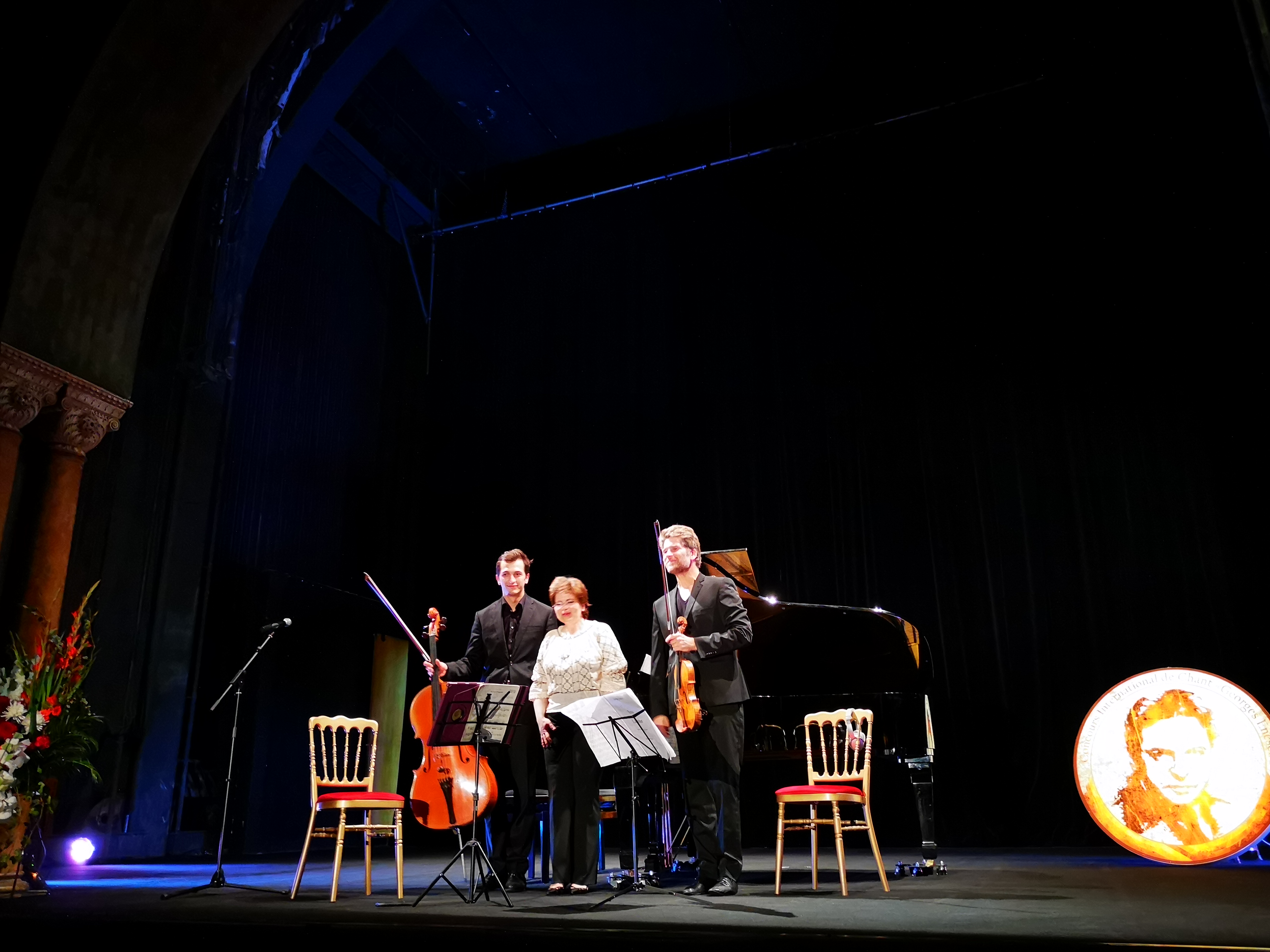 Astăzi vă invit la un concert desfăşurat în cadrul Întâlnirilor Muzicale Enesco, din octombrie 2018, în minunata Sală Bizantină a Palatului Behague, din inima Parisului, în Ambasadei României în Franţa. Primul din seria de trei a avut titlul Carte Blanche à la pianiste Dana Ciocârlie, ea însăşi româno-franceză prin formaţie, repertoriu şi apartenenţă, care i-a invitat alături de ea pe violonistul Nicolas Dautricourt, ataşat de repertoriul enescian cu mult înainte de a fi chiar invitatul Festivalului Enescu de la Bucureşti şi pe violoncelistul Aurélien Pascal, un muzician globe trotter de cea mai aleasă speţă, vom avea prilejul să îi cunoaştem pe fiecare în scurte interviuri.