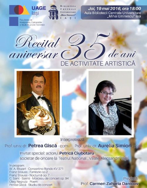 Discul se numește Creații pentru corn ale compozitorilor români de pe ambele maluri ale Prutului și este opera cornistului Petrea Gîscă, prof.univ.dr. la UNAGE și a pianistei Aurelia Simion, prof.univ.dr. la aceeași universitate și prorector în perioada 2016-2020.