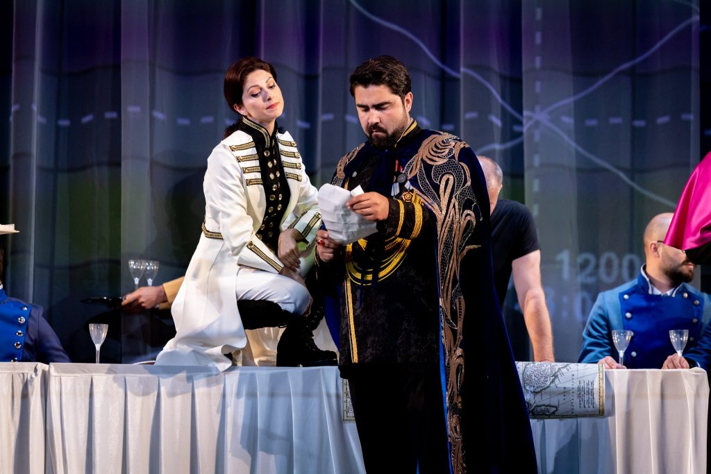 Ne propunem să ascultăm cele mai importante momente ale lucrării trecând în revistă ambele distribuții, fragmente din conferința de presă și interviuri (la care am mai renunțat, deși sunt copioase, am extras doar informațiile) și sperăm să încăpem cu toate, pentru că această imagine de ansamblu vrem să vă fie far în stagiunea 2022-2023, când vă invităm neapărat la operă, aici unde personaje complicate trăiesc doar pentru câteva ore într-o seară feerică, dar ne lasă amintiri pentru o viață.