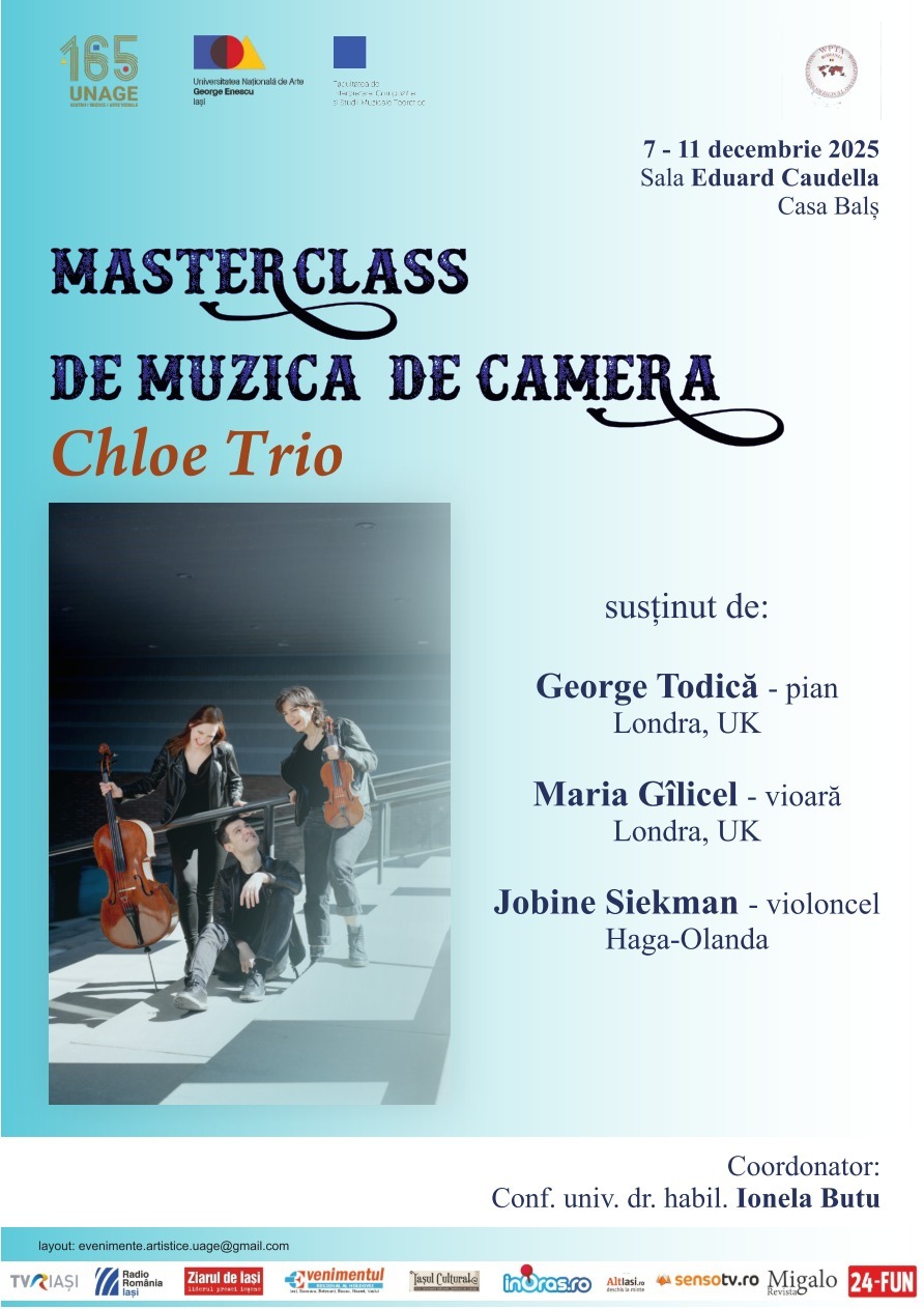 Astăzi vă invităm să urmărim împreună trei artiși de top, care formează Trioul cu pian Chloé. Despre Maria Gîlicel - vioară, Jobine Siekman - violoncel și George Todică - pian s-a spus că sunt rari ca personalitate interpretativă, un trio inspirator, tineresc și viguros. Invitată în emisiune conf. univ. dr. Ionela Butu, organizatoarea proiectului Erasmus, prin care au fost făcute invitațiile. Prezentări de Ligia Fărcășel, dr. în muzică, muzicolog și cs III. Vă așteptăm cu drag pe toate frecvențele Radio Iași și pe radioiasi.ro/asculta-live