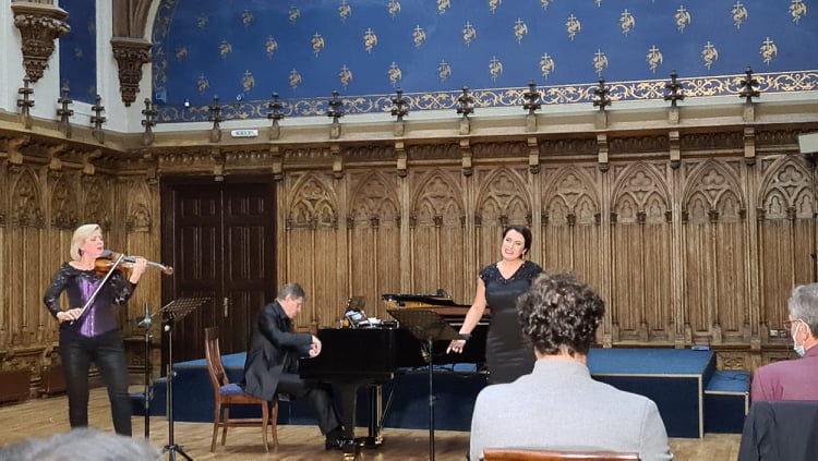 Iași, Sala Henri Coandă de la Palatul Culturii: Romanian Music Journey, cu soprana Rodica Vică, violonista Clara Cernat și pianistul și compozitorul Thierry Huillet