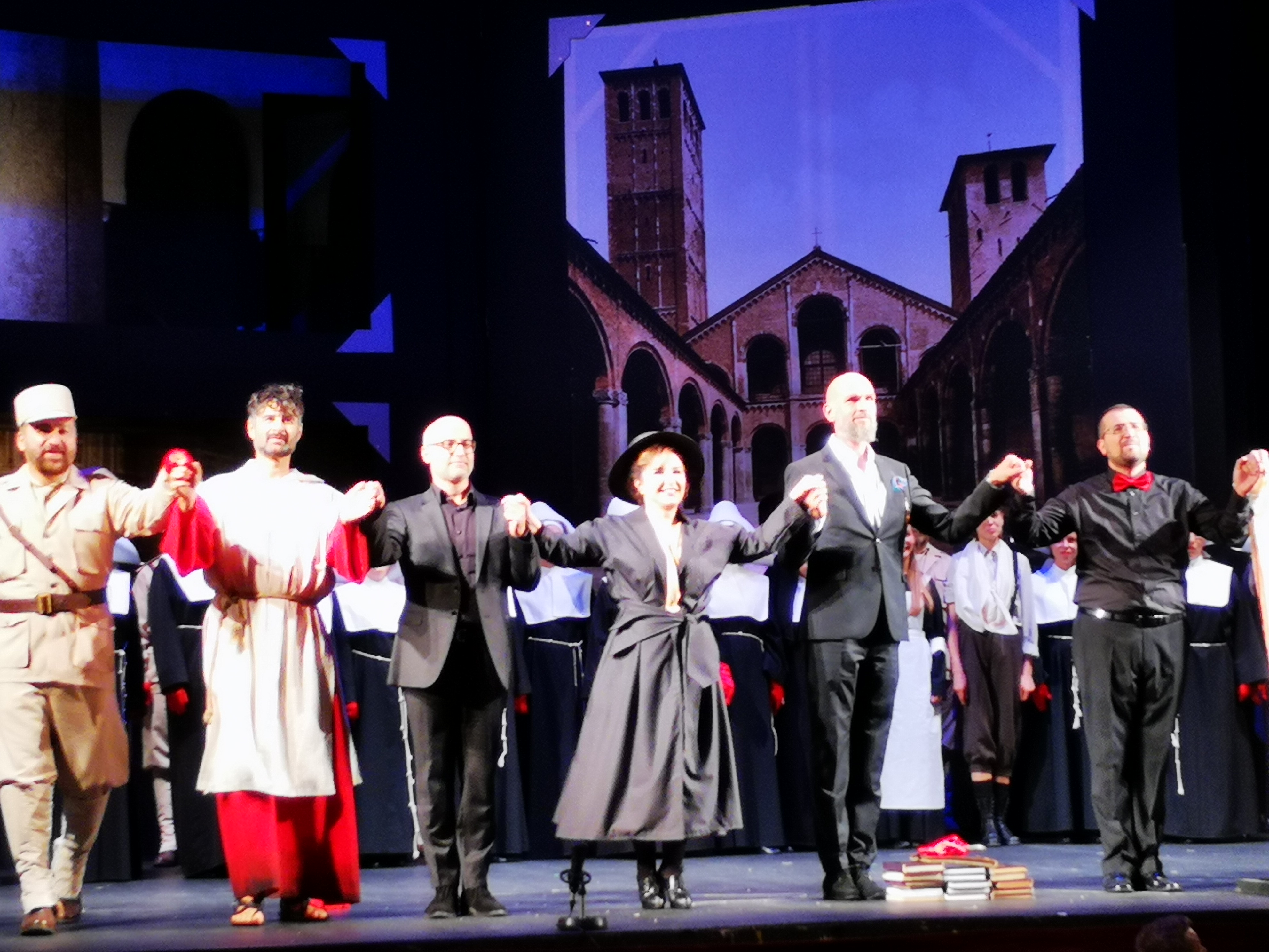 pentru Giselda, rol de coloratură care are şi o puternică tentă dramatică, a fost invitată soprana Elena Moşuc, a cărei maturitate vocală şi tehnică solidă i-au permis să smulgă strigăte de uimire şi ropote asurzitoare de aplauze. În rolul Pagano, fratele lui Arvino, a fost invitat basul Kovacs Istvan de la Budapesta, cu voce puternică, bogată, limpede şi strălucitoare şi ambitus impresionant, la fel ca tenorul Sorin Lupu, care s-a achitat admirabil de rolul la fel de solicitant al tatălui Giseldei şi şeful cruciaţilor, Arvino, toţi trei având de cântat aproape permanent pe parcursul lucrării. În rolul Oronte, de care se îndrăgosteşte Giselda când e prizoniera musulmanilor din Antiohia, se remarcă tenorul Pataki Adorjan, cu o partitură destul de dificilă şi ea, dar de mai mică întindere. Din distribuţie fac parte în continuare, cu roluri mai mici, dar la fel de bine onorate, Barabas Zsuzsa în rolul Viclinda, Gergely Arnold în rolul Pirro, Rethi Zsombor în Prior (arhimandritul oraşului Milano), Manyoki Laszlo în Acciano şi Hary Judit în Sofia. Pe lângă scriitura complicată pentru solişti, uimeşte în această operă întinderea şi complexitatea partiturii corale, pentru care, de altfel, a fost aleasă iniţial lucrarea. Povestea mi-a dezvăluit-o dl. Gyula Szep, directorul Operei: regizorul Nemedi Csaba, care a întâlnit acest cor la Budapesta, a dorit să vină să lucreze cu el şi la Cluj. Şi atunci a găsit I Lombardi. Tot Nemedi Csaba este cel care a ales-o pe Elena Moşuc în Giselda, după ce a ascultat-o de mai mule ori în ultimele aprox. 2 decenii. Succesul acestui spectacol se datorează într-o măsură covârşitoare dirijorului Kulcsár Szabolcs, muzician pasionat care ştie că „în operă, spunem în primul rând o poveste” şi atunci toate cuvintele corului ajung să se audă cu o limpezime incredibilă, iar orchestra pare un singur instrument cu mii de voci. De notat frumuseţea momentului de vioară solo al concertmaestrului Barabas Sandor. Totul a sunat extraordinar din punct de vedere muzical, cu toate momentele mari în care cântă atât soliştii, cât şi corul, şi cu toată aglomeraţia şi densitatea acţiunii. Scenografia este semnată de elveţianul Gilles Gubelmann, care nu ţine cont neapărat de momentul în care e plasată acţiunea (sec. 11) şi creează o atmosferă de secol 19, cu imagini de arhivă din primul război mondial, care reuşesc să completeze şi să coloreze minunat spectacolul. Dl. Szep precizează că, deşi scăderea cu 30% a bugetului pentru bunuri şi servicii nu ar permite nici Operei Maghiare montarea unor premiere, chiar dacă ei îşi folosesc cu precădere propriile mijloace şi soliştii angajaţi, acest eveniment este totuşi posibil prin sprijinul Fundaţiei maghiare Belthen Gabor.