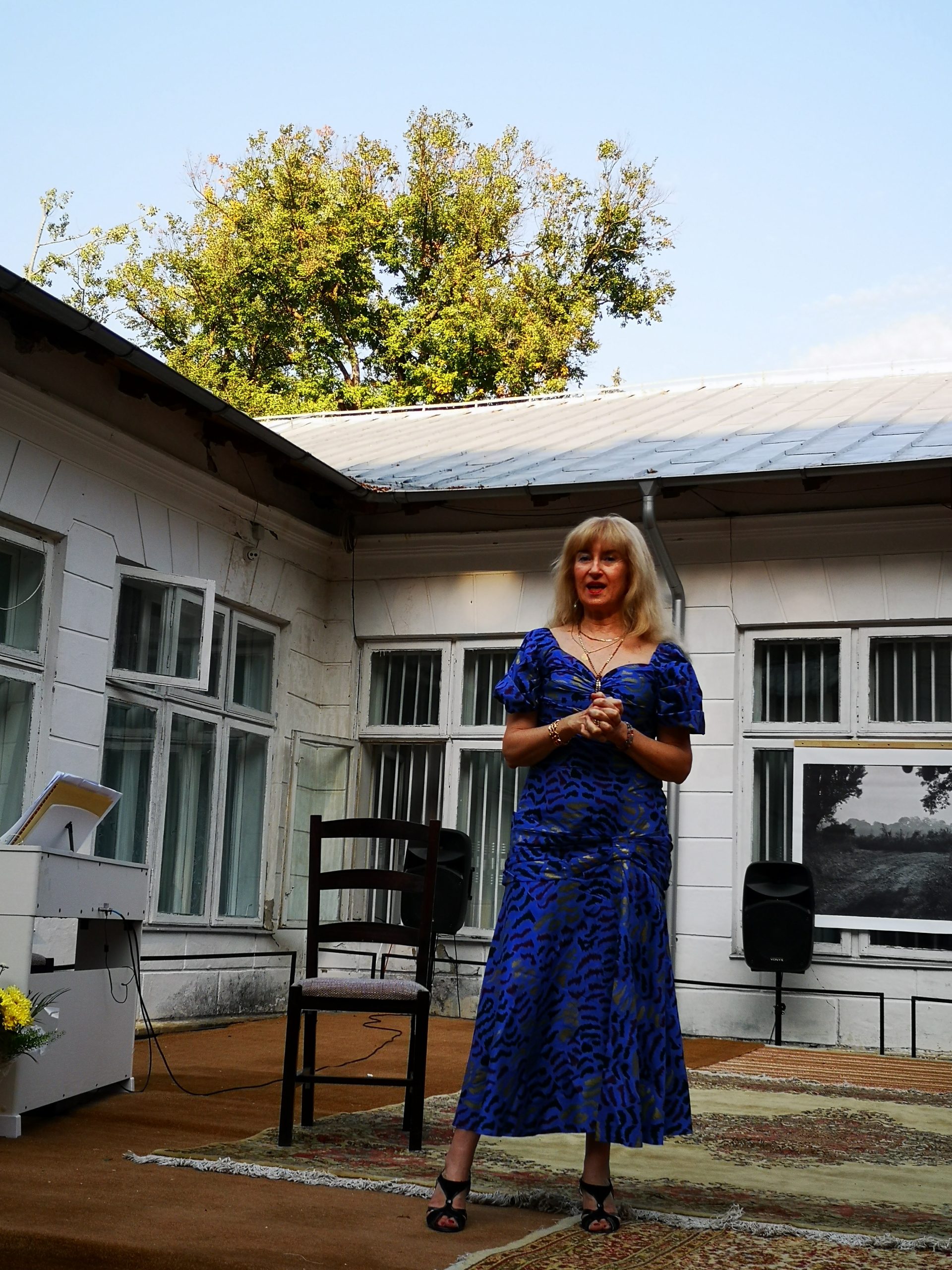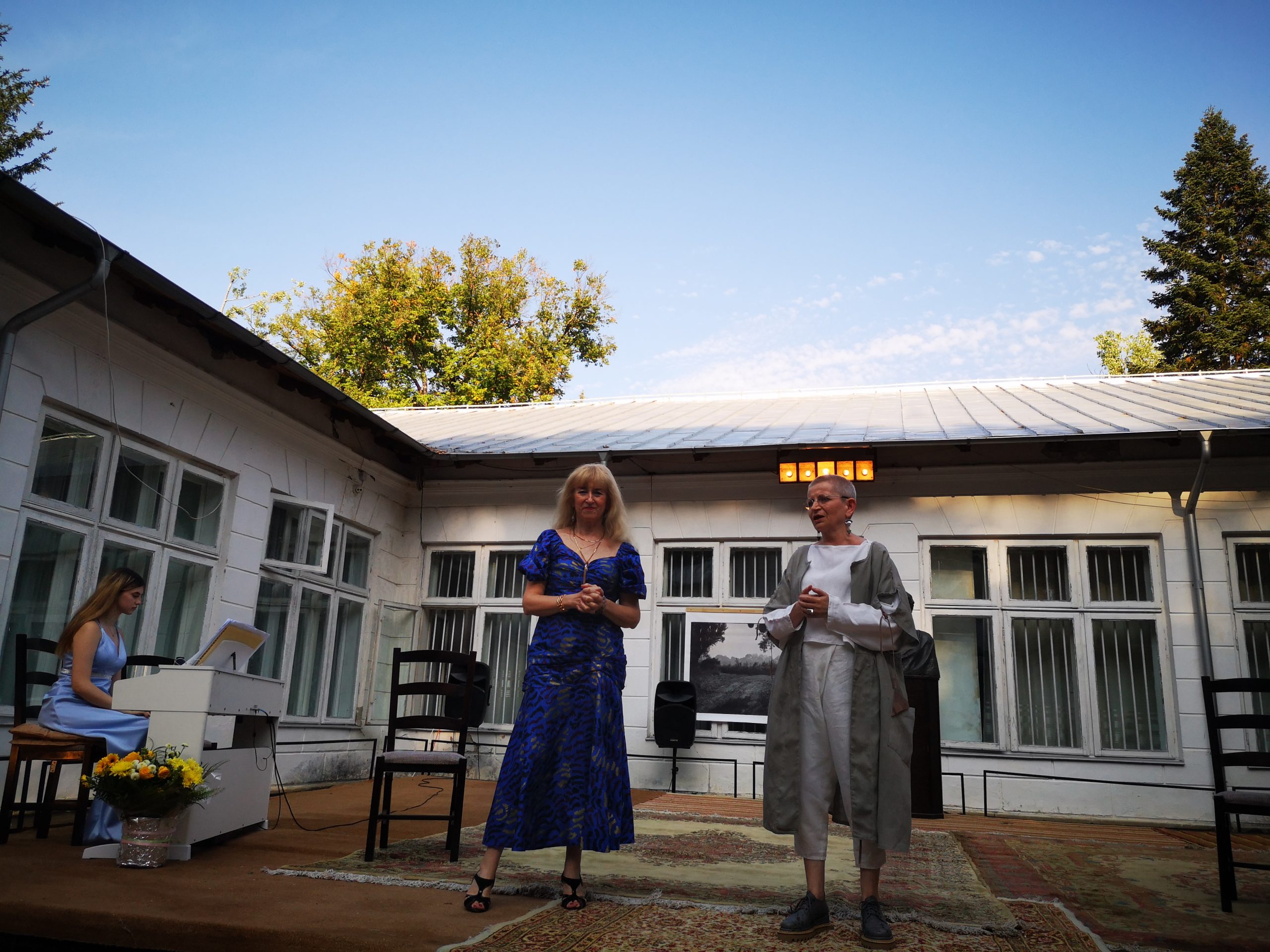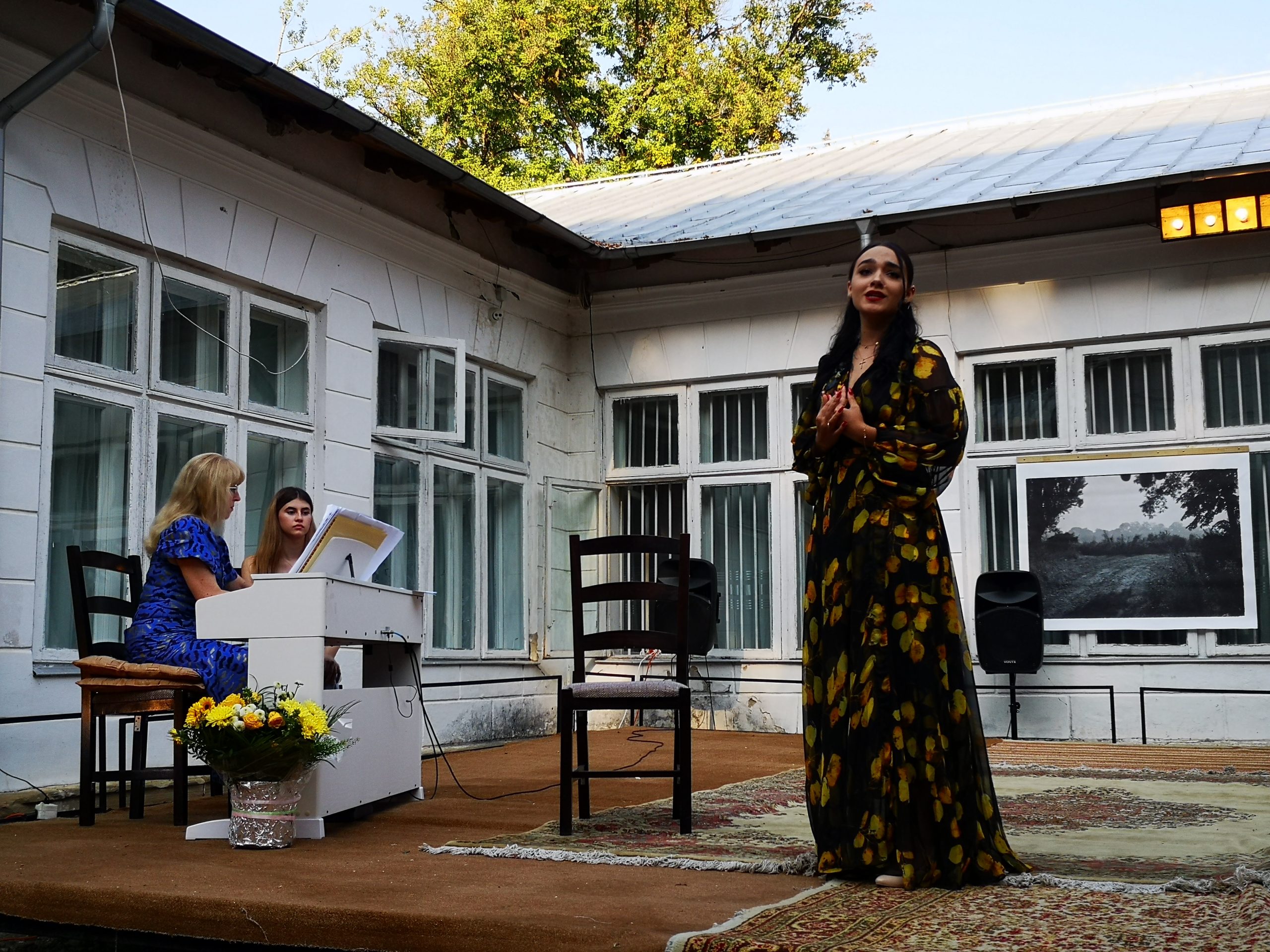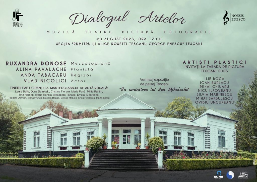 Sunt Daniela Vlad și vă prezint astăzi concertul final al acestei sesiuni de masterclass de artă vocală desfășurată la Conacul Rossetti-Tescanu-George Enescu între 13-20 august 2023. Profesorii sunt trei doamne superbe ale școlii românești de canto, mezzo-soprana RUXANDRA DONOSE, pianista – vocal coach ALINA PAVALACHE și regizoarea ANDA TĂBĂCARU. Alina Pavalache fiind organizatoarea, cu sprijinul Gabrielei Ilaș, administrator al muzeului și al doamnei Cristina Andrei, directorul Muzeului Național George Enescu. La concertul Dialogul Artelor au fost prezenți trei dintre pictorii veterani ai Taberei de pictură care se desfășoară aici într-o surprinzătoare continuitate de 47 de ani, domnii Ion Burlacu, Mihai Chiuariu și Mihai Sârbulescu, cre au creat un cadru plăcut cu lucrările lor, iar literatura a fost prezentă prin câteva texte ale filosofului Emil Cioran, cu trimiterea la muzică, citite de actorul Vlad Nicolici. Înainte de a porni audiția, să aducem și noi un omagiu pictorului Ion Mihalache, în memoria cărui a fost vernisată EXPOZIȚIA REMEMBER ION MIHALACHE. Și acum start, cu Alina Pavalache.
