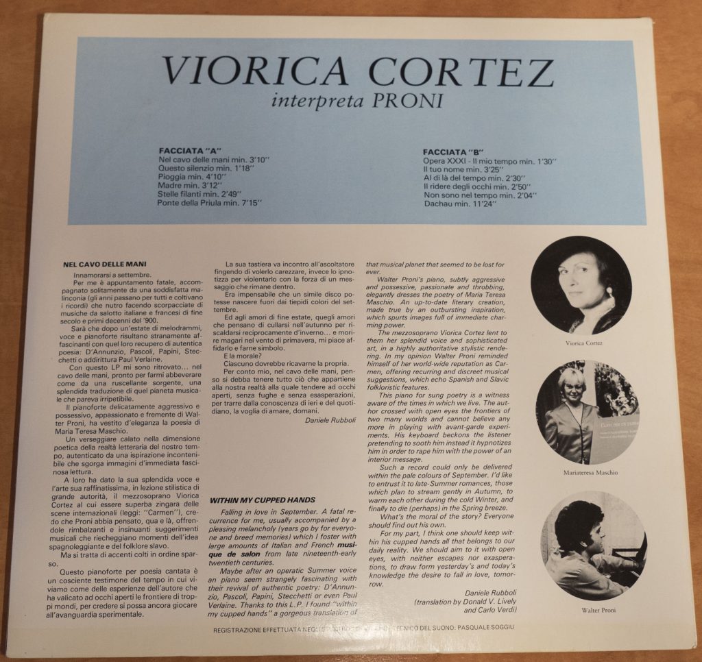 Un album din 1981 al mezzosopranei Viorica Cortez, rămas necunoscut: Nel cavo delle mani, la Univers Muzical cu Daniela Vlad