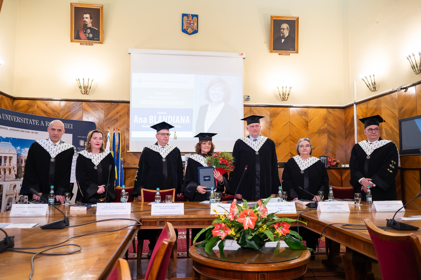 După cum bine știți, reprezentanții Universității „Alexandru Ioan Cuza” din Iaşi (UAIC) au conferit în ziua de luni, 16 martie 2026, începând cu ora 14, în Sala Senatului, titlul de Doctor Honoris Causa doamnei Ana Blandiana, membru titular al Academiei Române.