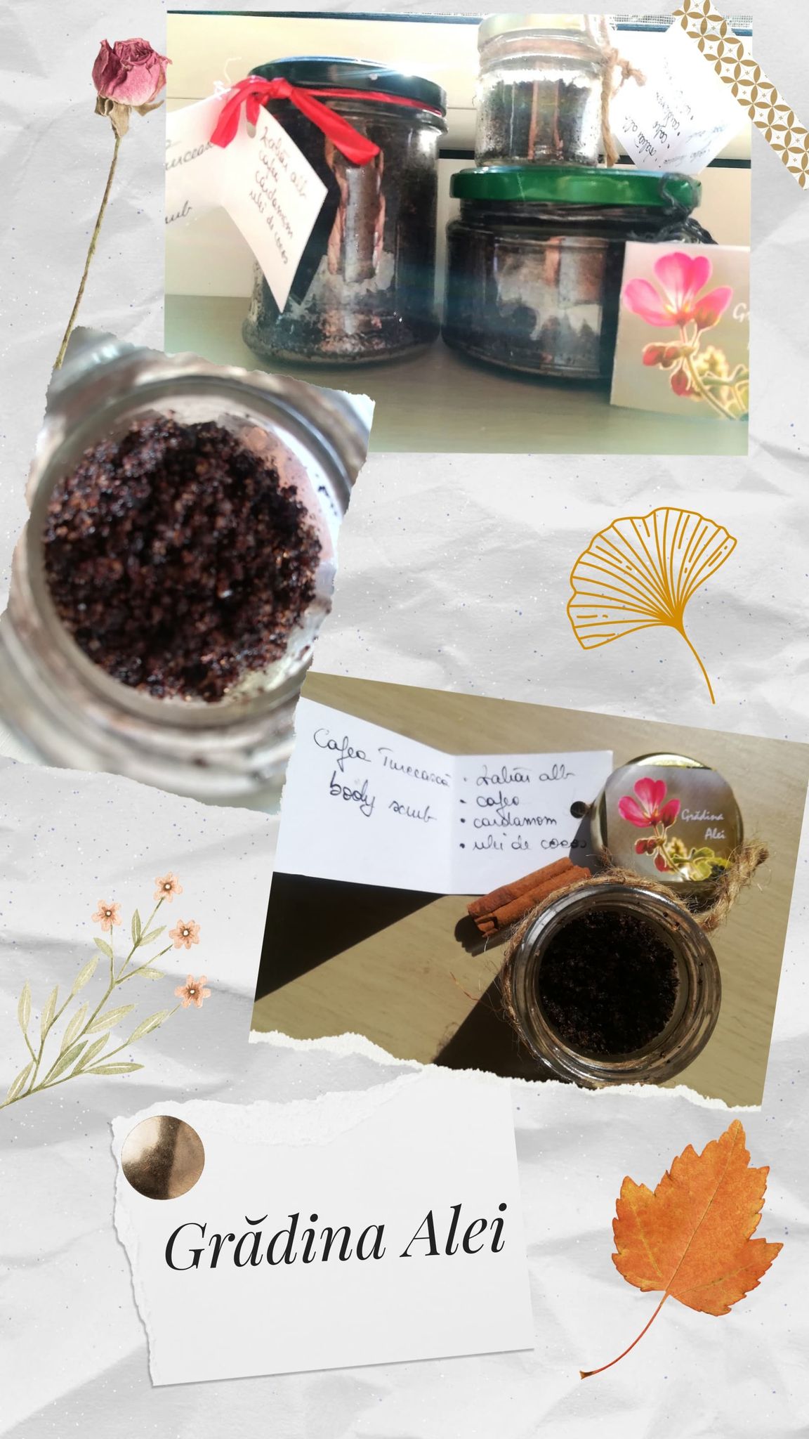 Am simțit impulsul de a crea noi rețete de sare de baie, astfel încât să intru în spiritul Crăciunului și să pun în borcănele toate aromele minunate ale sărbătorilor de iarnă. Fac același lucru și pentru exfoliante de corp. Este o experiență extraordinară să mă las învăluită și inspirată de aromele plantelor, condimentelor, uleiurilor esențiale… Deci asta sunt eu, creator de arome și de experiențe pentru trup și suflet. Fotografiile sunt de pe pagina de facebook, unde postez din când în când inspirație”, îi mărturisea Alexandra Largu, colegei noastre Petronela Cotea Mihai.