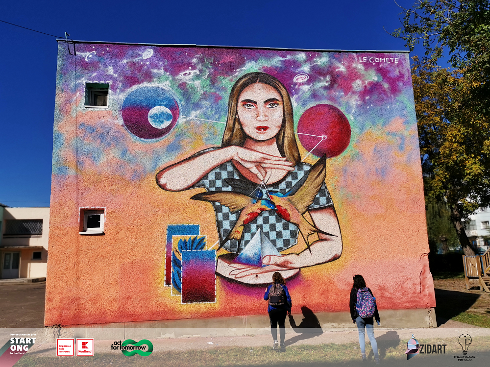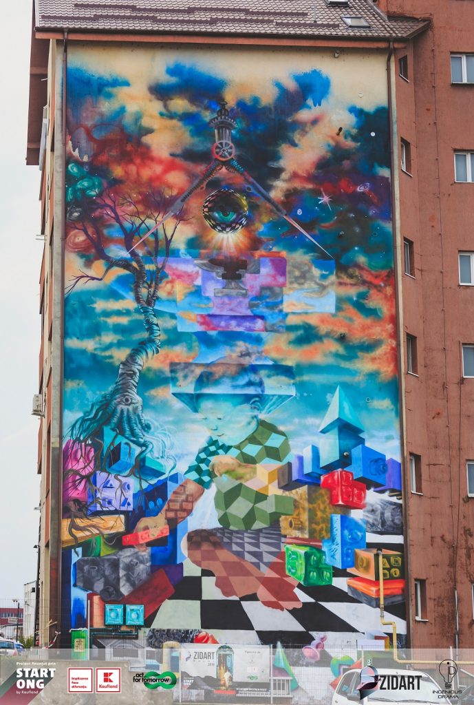 ”ZidArt” este numele unui proiect care este implementat de Asociația Ingenious Drama. Inițiativa presupune realizarea unor picturi murale de mari dimensiuni pe pereții exteriori ai unor clădiri din orașul Bacău.