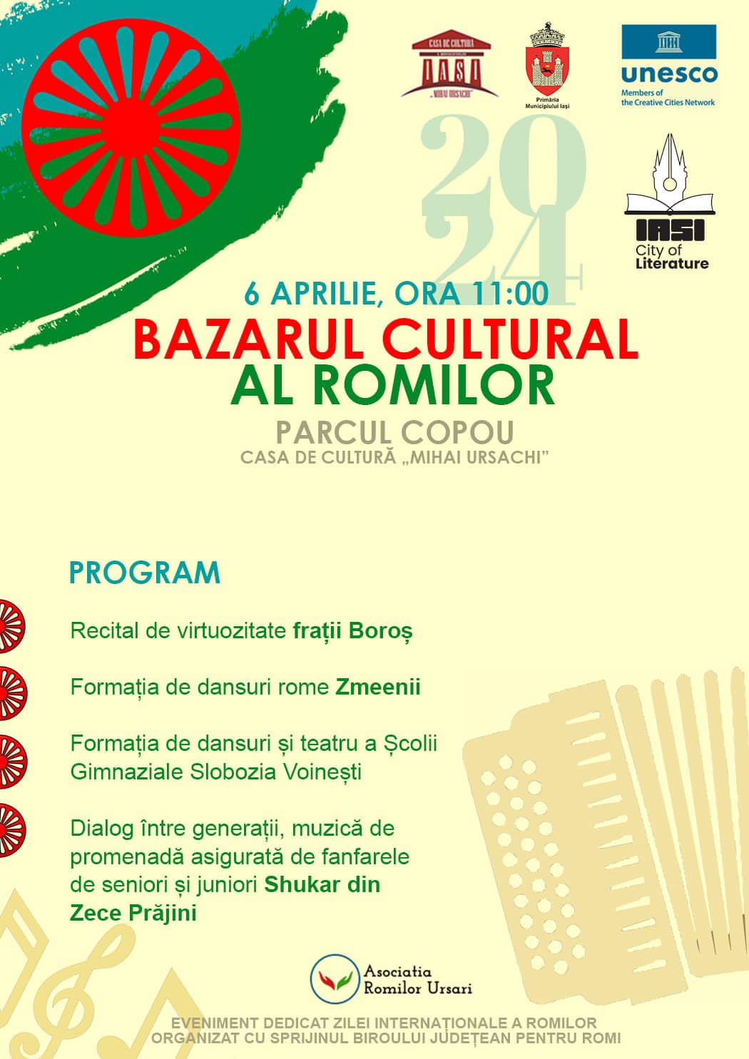 Reamintim că, în ediția de astăzi a emisiunii noastre, relatăm de la „Bazarul Cultural al Romilor”, manifestare care s-a desfășurat sâmbătă, 6 aprilie 2024, începând cu ora 11, în Parcul Copou din târgul Iașilor. Evenimentul a fost organizat de către reprezentanții Casei de Cultură „Mihai Ursachi” a Municipiului Iași, în parteneriat cu cei ai Asociației Romilor Ursari și cu sprijinul celor din Biroul Județean pentru Romi.