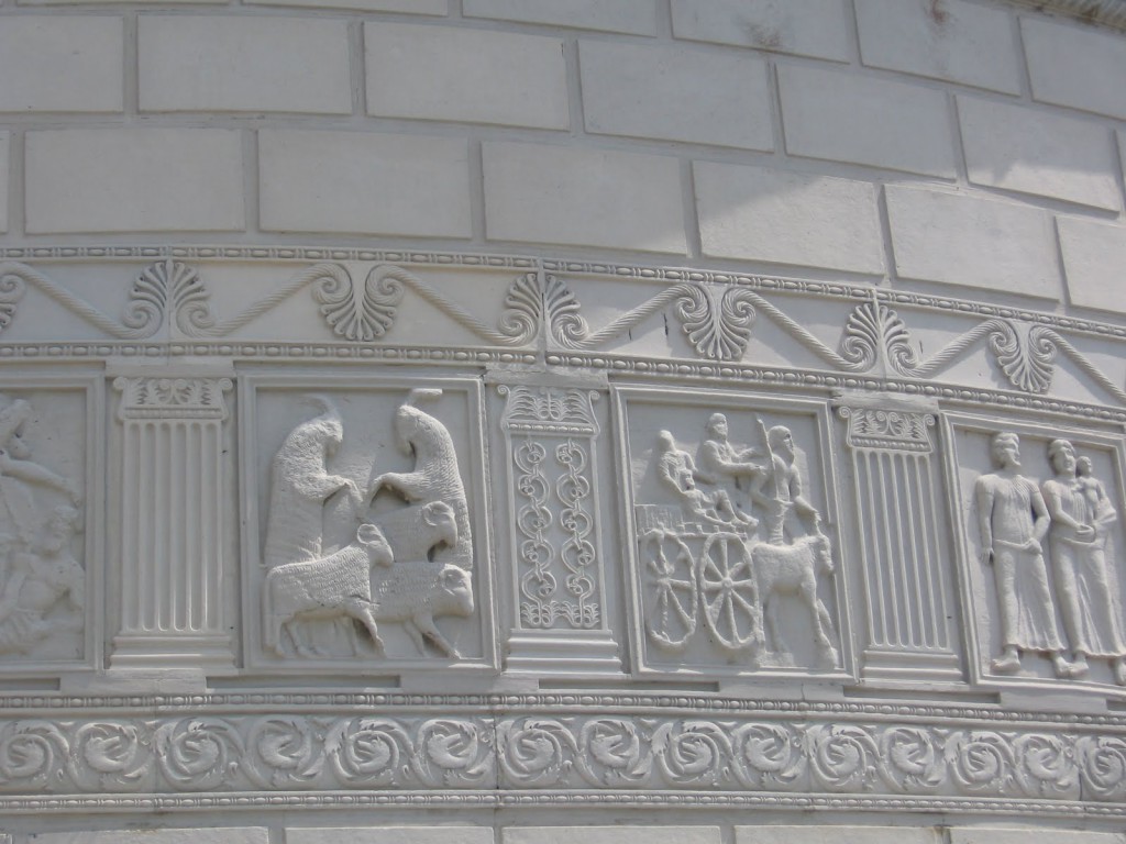 În fapt, un monument imens, circular, cu o înălţime de 20 de metri şi o lăţime de 30 de metri, decorat de jur împrejur cu 54 de basoreliefuri, ce reprezintă scene de luptă. Monumentul triumfal făcea parte dintr-un ansamblu mai mare care cuprindea şi un altar funerar, pe ai cărui pereţi se aflau înscrise numele celor aproape 3.800 de soldaţi romani căzuţi în lupta de la Adamclisi. Cetatea mai cuprinde un mausoleu format din trei ziduri concentrice, în care, spun istoricii, ar fi fost înmormântat comandantul care a decis victoria în anul 102.