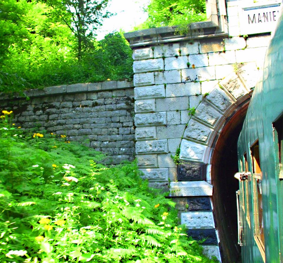 Dealurile, asemeni unor spinări curbate, pierd din înălţimi pe măsură ce se apropie de linia orizontului. Nici bine plecaţi din gara Gârlişte, trenul este înghiţit aproape instantaneu de hăul întunecos al celui mai lung tunel al rutei, tunelul Gârlişte, în lungime de 672,62 de metri. Acesta face deschiderea panoramei şi stabileşte traiectoria coborâşului spre oraşul Anina. Până la destinaţie însă trebuie parcurse şi celelalte tuneluri mai mici ale rutei pentru ca exact la ora 16 şi 50 de minute, după un lung semnal acustic, să intre în cea mai veche gară a Banatului Montan, Anina.