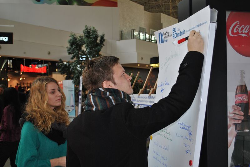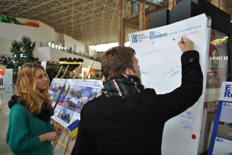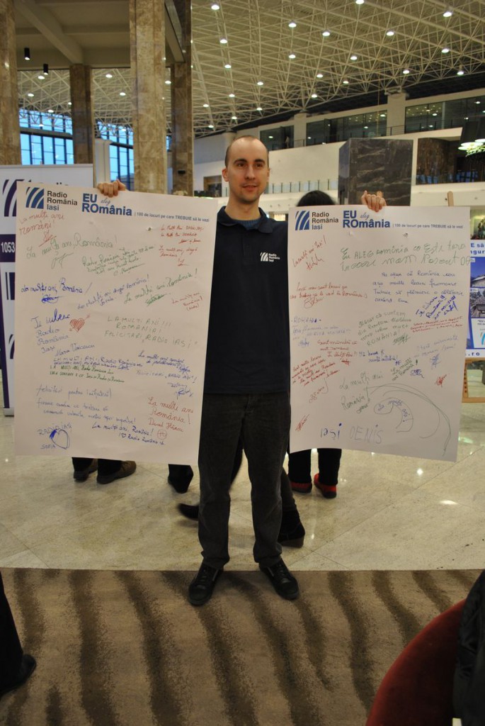 UPDATE ora 21:00 – În cele peste 11 ore de la deschiderea expozitiei EU Aleg Romania în Palas Mall, aproximativ 1500 de persoane ne-au vizitat şi ne-au transmis mesaje de felicitare. Echipa Radio Iaşi a împărţit steguleţe, calendare, pixuri şi pliante şi s-a fotografiat cu toţi iubitorii frecvenţelor de 1053 Khz, 90,8, 96,3 Mghz.