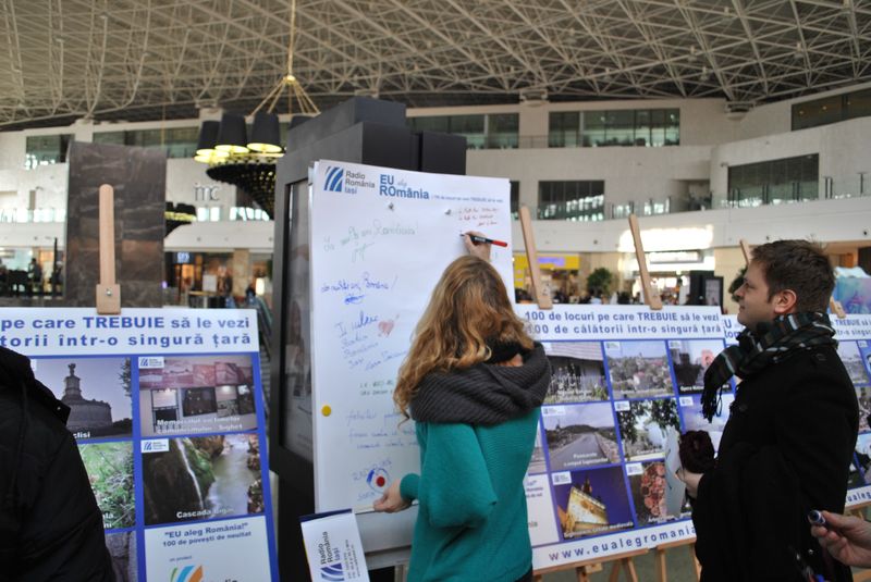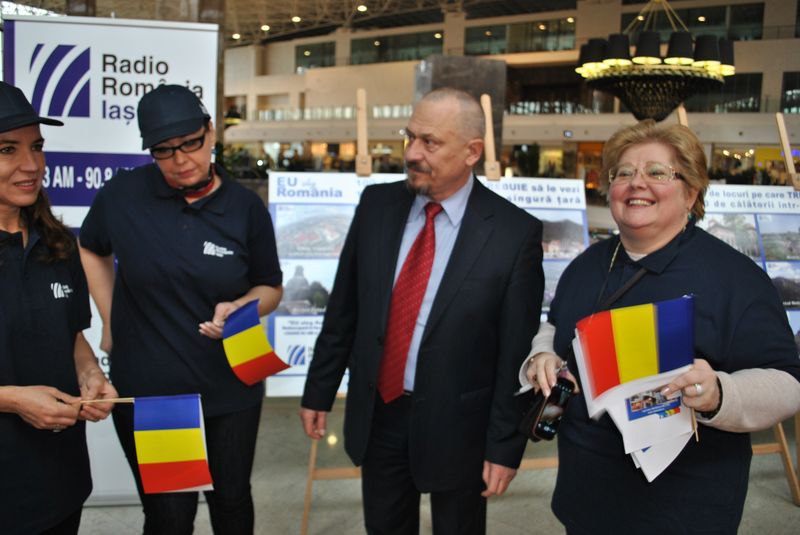 UPDATE ora 21:00 – În cele peste 11 ore de la deschiderea expozitiei EU Aleg Romania în Palas Mall, aproximativ 1500 de persoane ne-au vizitat şi ne-au transmis mesaje de felicitare. Echipa Radio Iaşi a împărţit steguleţe, calendare, pixuri şi pliante şi s-a fotografiat cu toţi iubitorii frecvenţelor de 1053 Khz, 90,8, 96,3 Mghz.