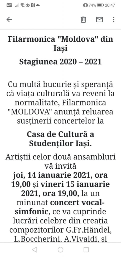 14-15 ian., Reluarea Concertelor Filarmonicii Moldova din Iaşi