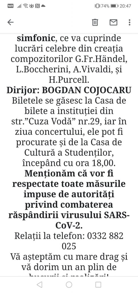 CONCERT VOCAL-SIMFONIC DE CRĂCIUN VINERI, 19 decembrie 2025, ora 19:00 – Casa de Cultură a Studenților Iași SÂMBĂTĂ, 20 decembrie 2025,...