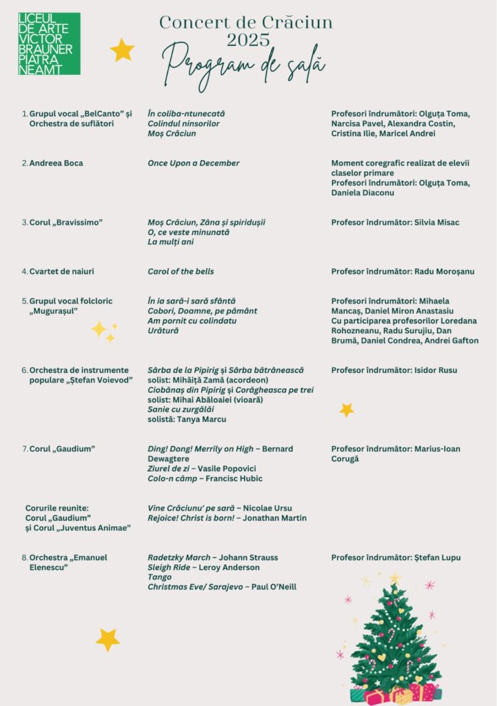 15 dec., 17:00 (transimisie live) Concert de Crăciun – Liceul de Arte Victor Brauner Piatra Neamț