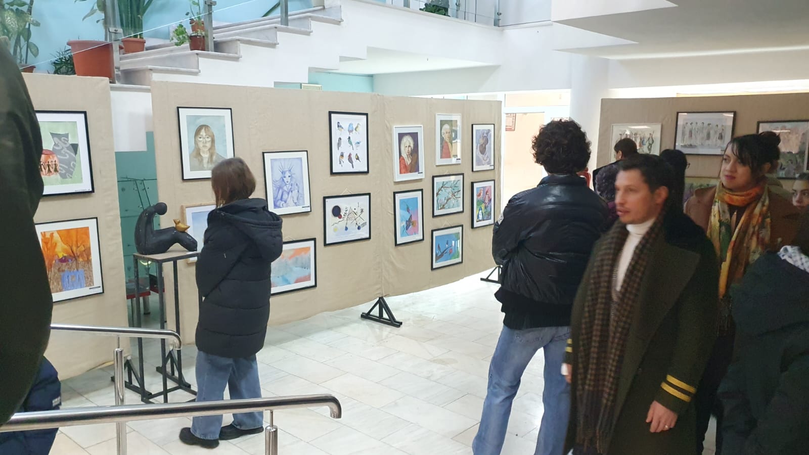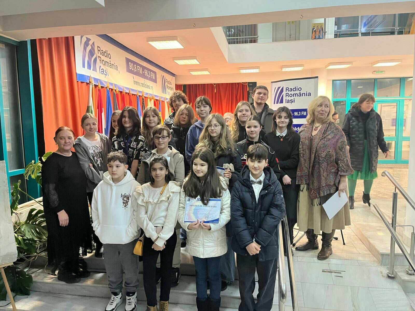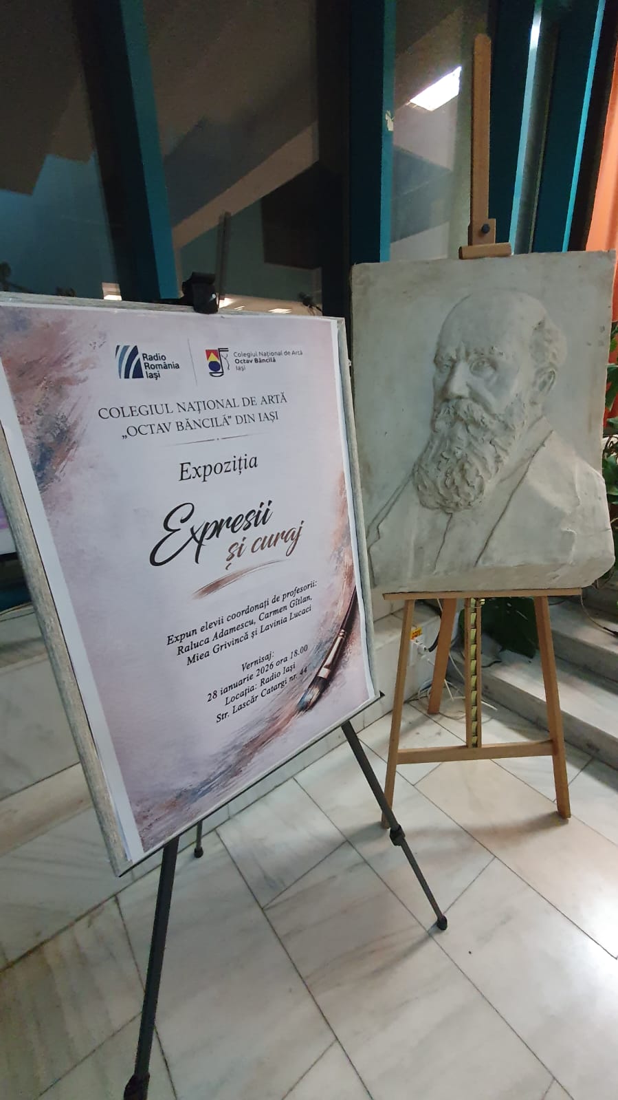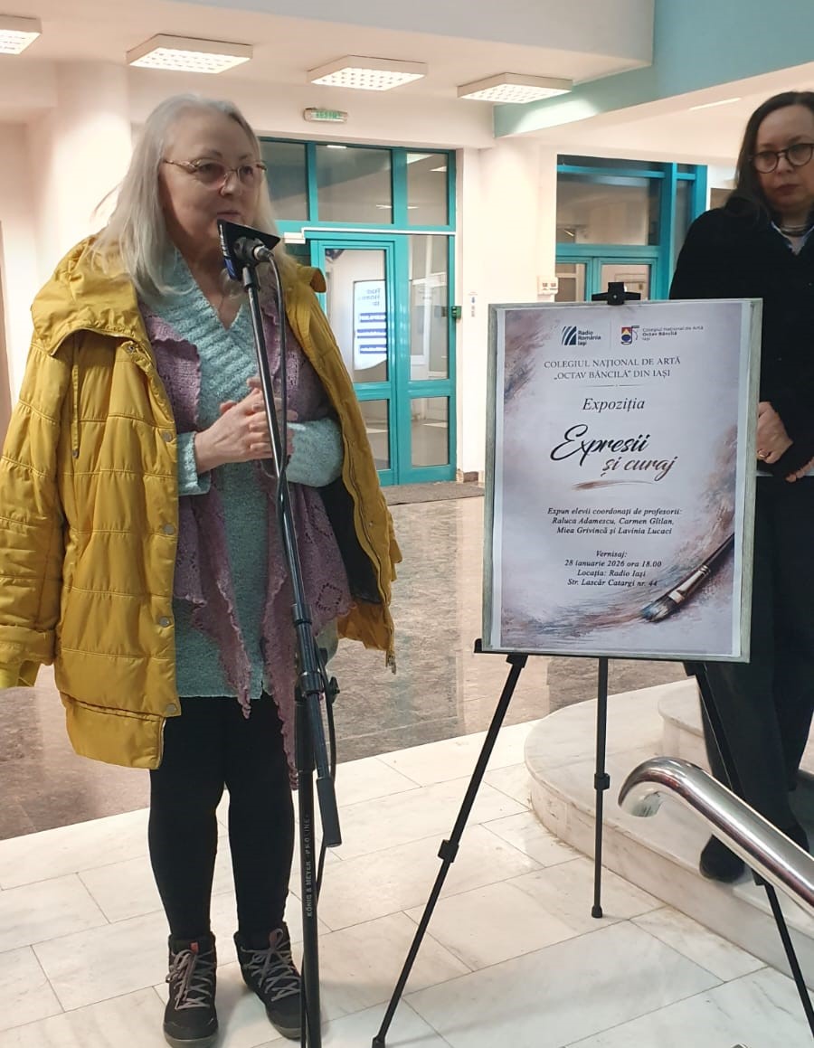 Radio Iași găzduiește a 2-a ediție a expoziției elevilor plasticieni de la Colegiul Național de Artă Octav Băncilă. Vernisajul a avut loc pe 28 ianuarie, la doar o zi de la aniversarea lui Mozart, care împlinește nu mai puțin de 270 de ani. Și Mozart a fost prezent la vernisaj, nu doar prin muzica discretă din fundal, ci și într-un portret al unui elev de clasa a V-a, cu imaginea cunoscută a copilului Mozart. Poate că unii s-au gândit deja că există o legătură între el și copii precoce de azi. În fiecare din lucrările celor mici am întrezărit o scânteie, un talent înfiripat, o predilecție pentru linii sau culoare și chiar un dar de a crea atmosferă. Puritatea unor fluturi sau a păsărilor se întâlnește undeva în câmpul cuantic tot cu Mozart și muzica lui celestă, iar vasele de ceramică din natura așa-zis moartă purtau cu ele exact mesajul de trăinicie și spiritualitate autentică de care avem nevoie în aceste vremuri de prefaceri planetare. Am descoperit din nou forța de expresie și culoare care poate răzbate deja în lucrările unui elev de doar 13 ani și adevăratele compoziții în lut ale elevilor de clasa a XII-a. Ei au adus de asemenea două lucrări de mari dimensiuni, un bust al lui Sergiu Celibidache și un basorelief – aproape autorelief – cu bustul lui Nicolae Iorga.