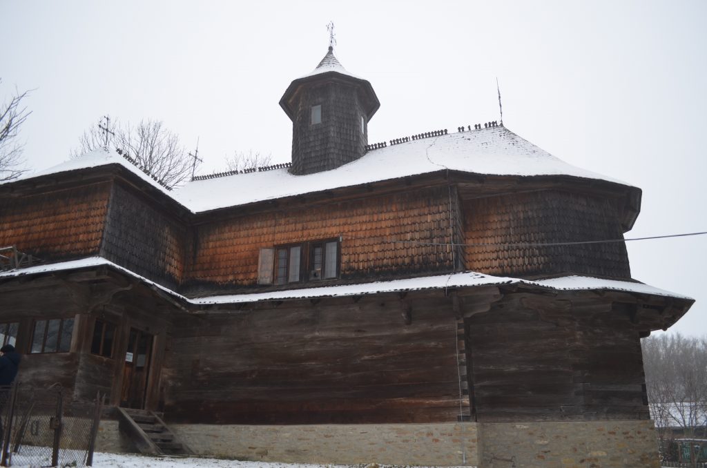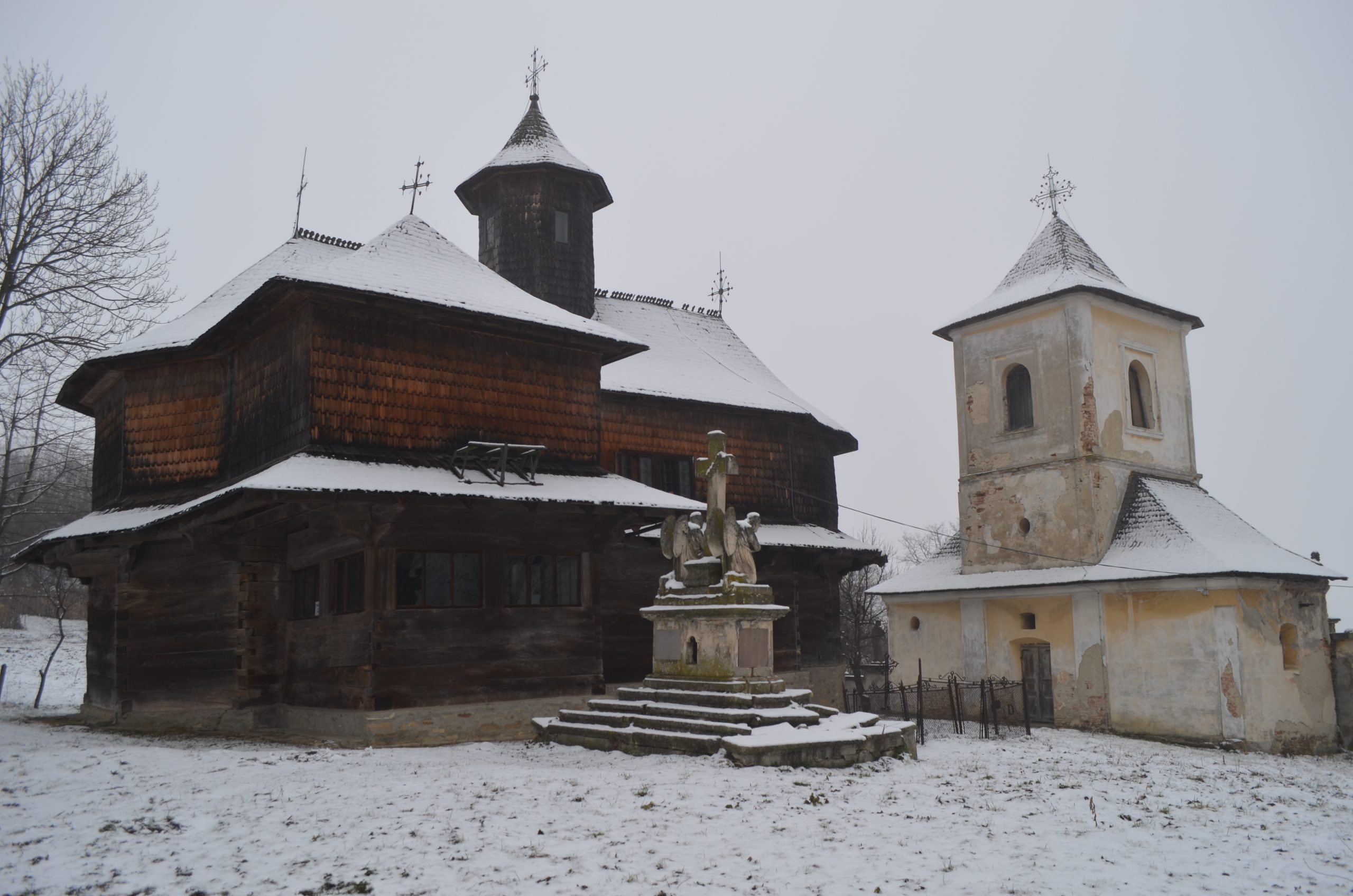 Corpul bisericii este format din bârne de lemn pe fundație și soclu de piatră, acoperișul în șarpantă, coama țuguiată, cu poalele sterașinei prelungite în afară – pentru apărarea pereților.
