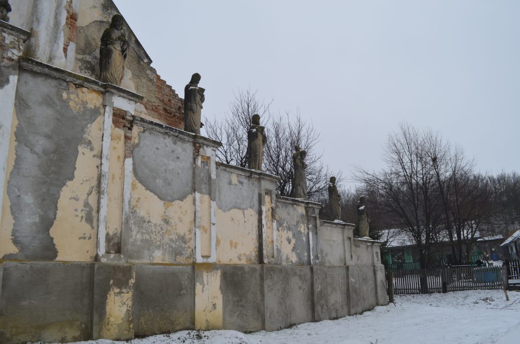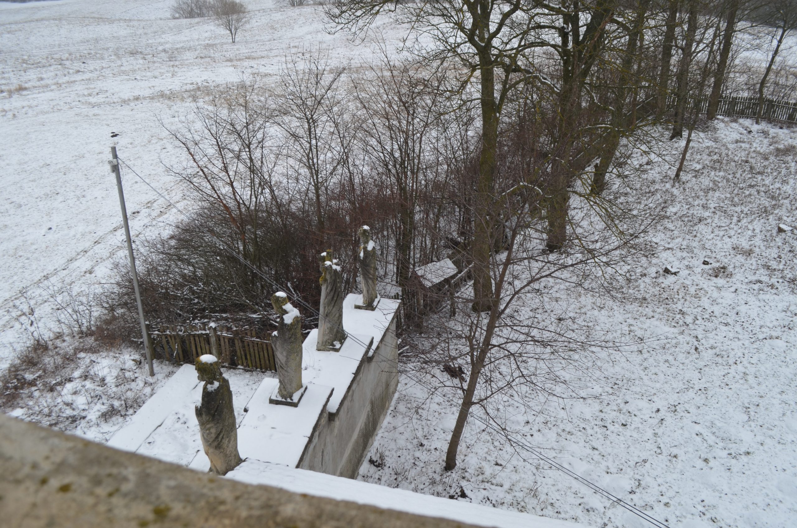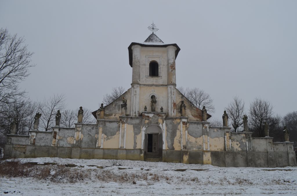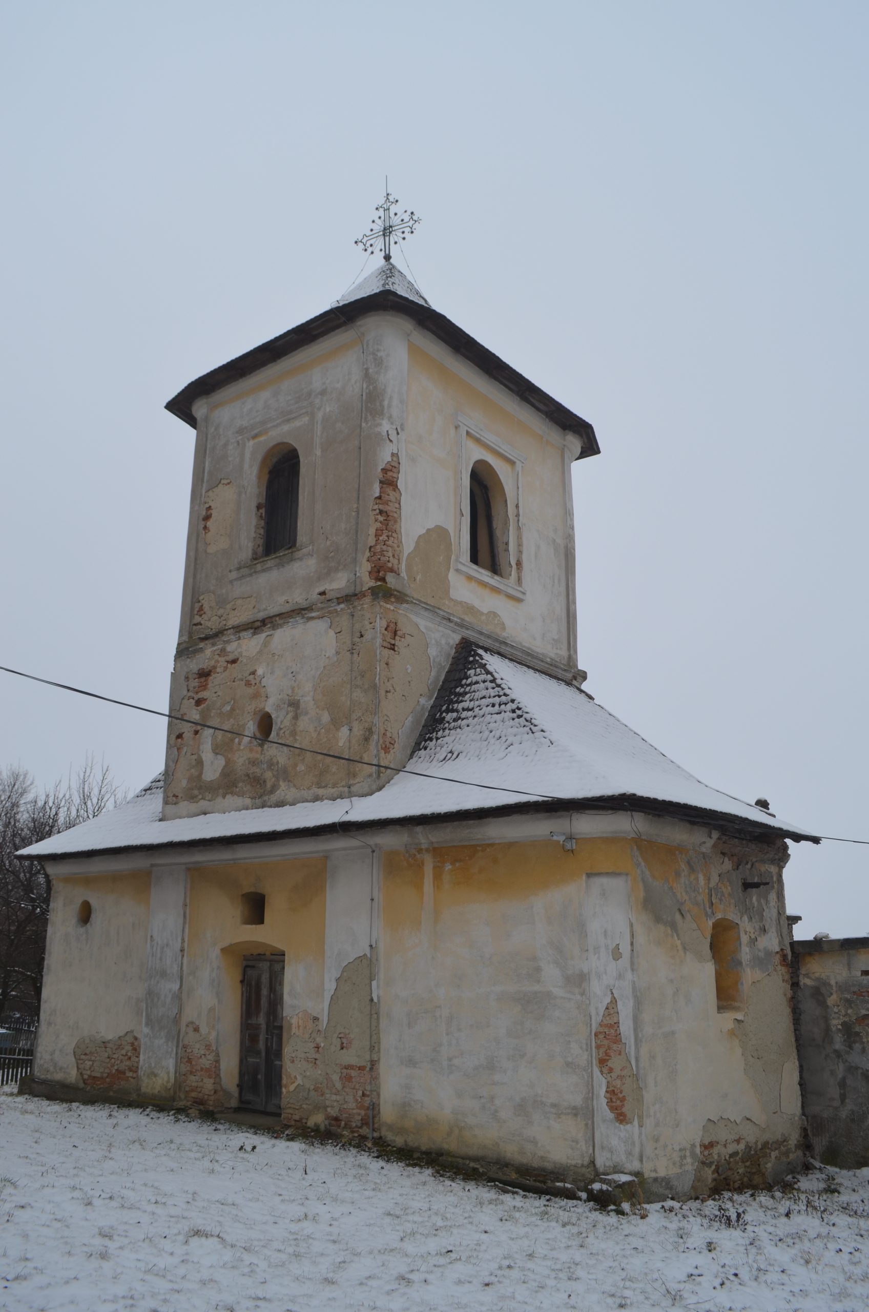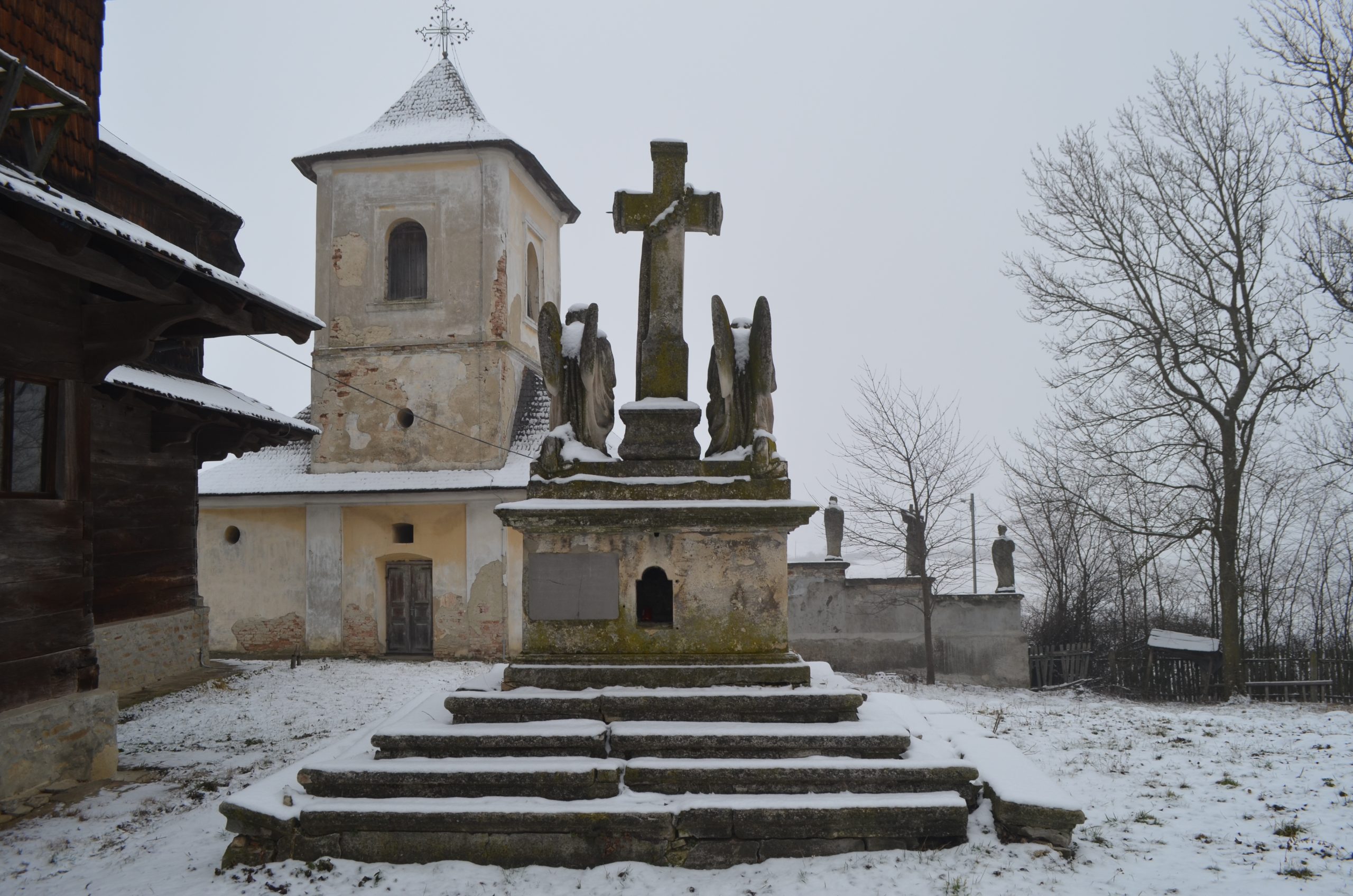 În rând cu clopotnița, întâlnim un monument având caracter religios; pe un soclu de piatră se păstrează chipul Mântuitorului, între doi îngeri, în dreapta și stânga, pe coama zidurilor, chipurile apostolilor/figuri sculptate în piatră. În genul monumentelor similare din Apus, Biserica „Adormirea Maicii Domnului” poartă caracteristicile artei romanice…
