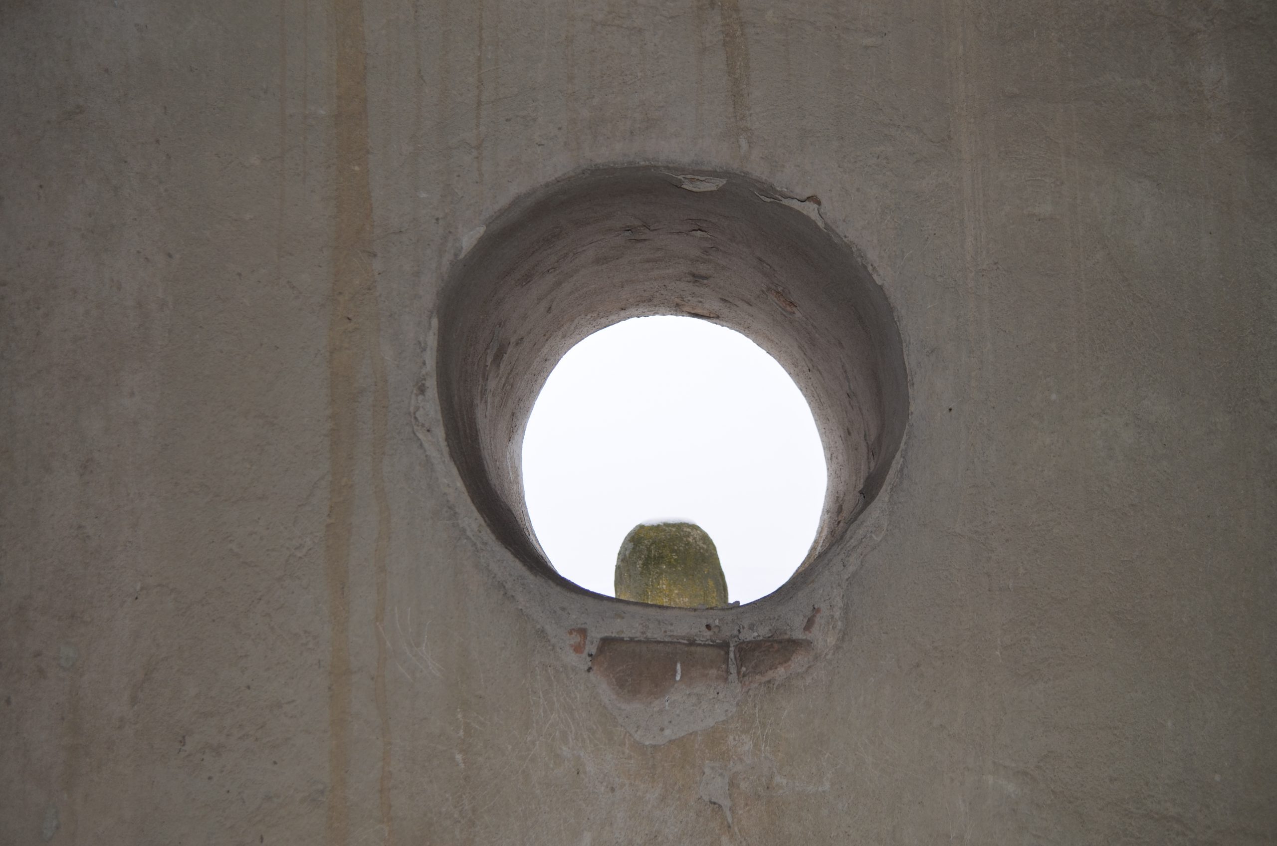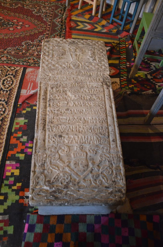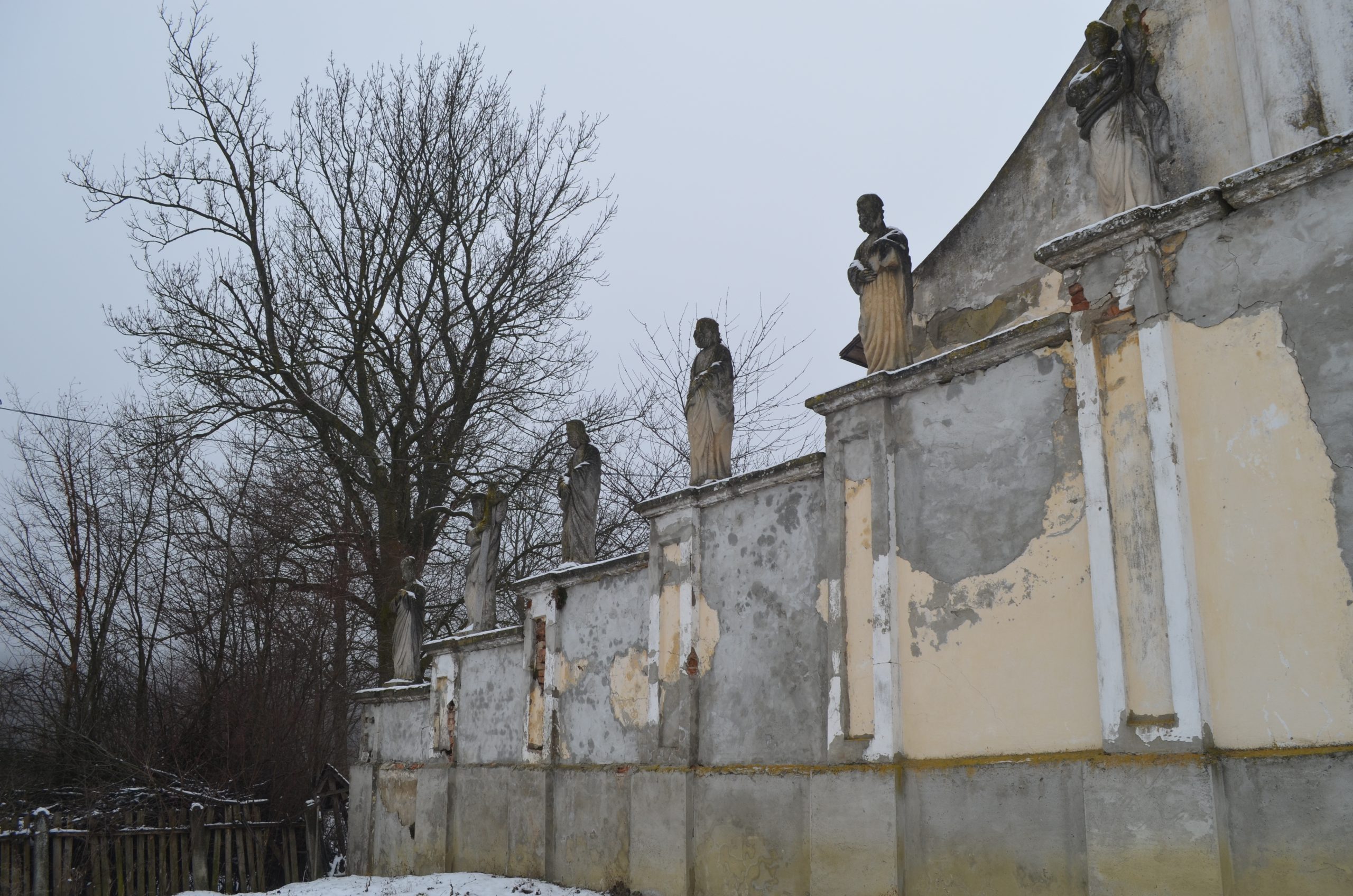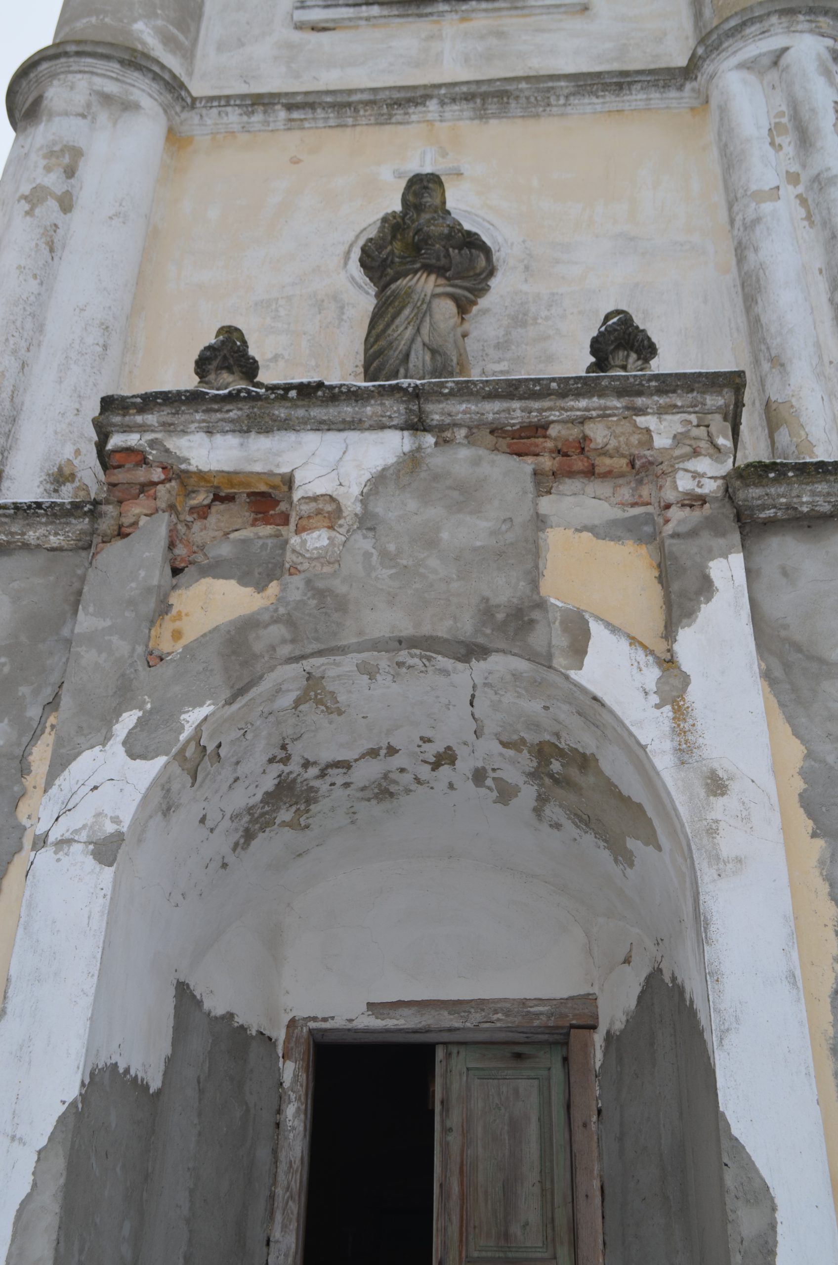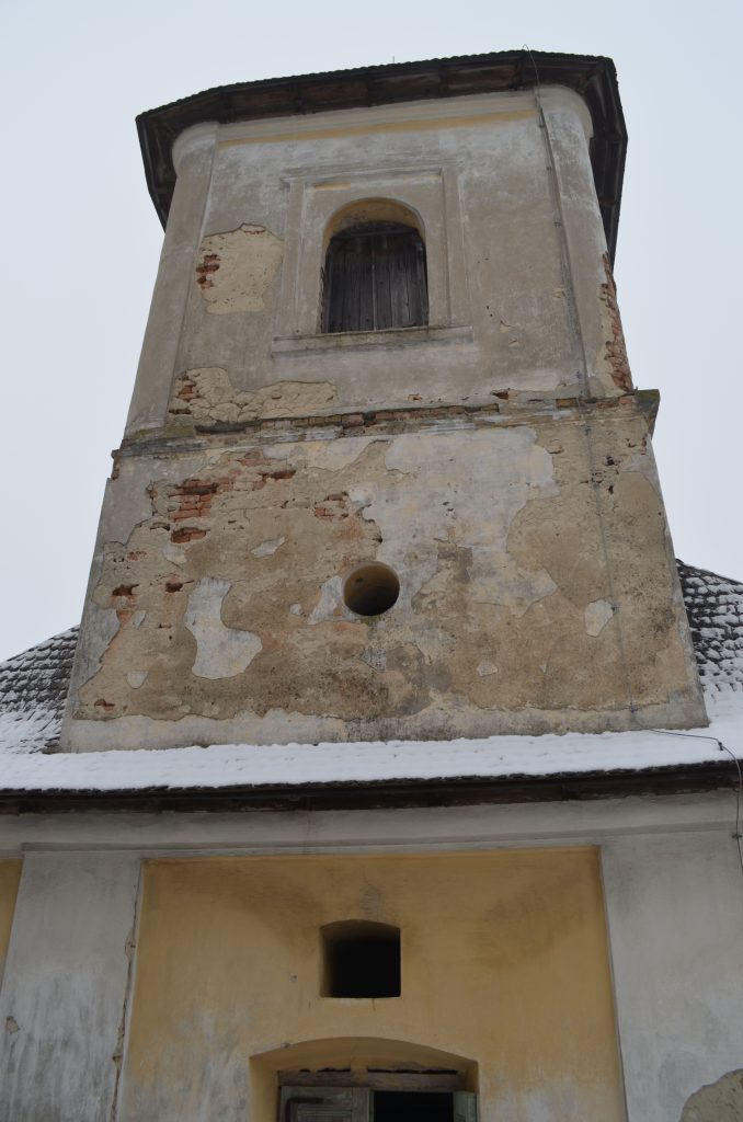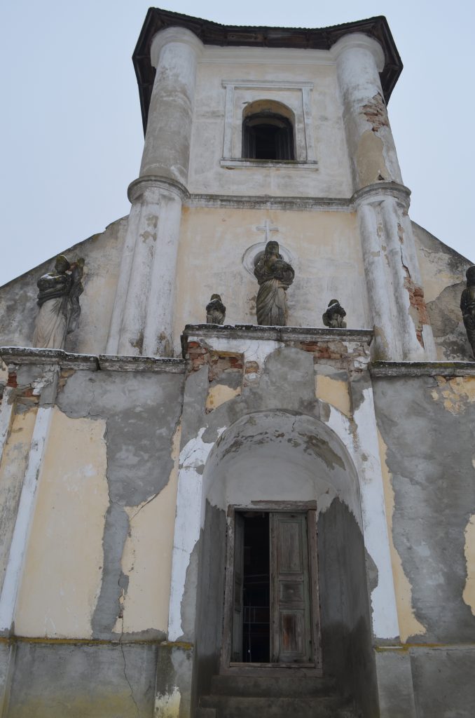 În rând cu clopotnița, întâlnim un monument având caracter religios; pe un soclu de piatră se păstrează chipul Mântuitorului, între doi îngeri, în dreapta și stânga, pe coama zidurilor, chipurile apostolilor/figuri sculptate în piatră. În genul monumentelor similare din Apus, Biserica „Adormirea Maicii Domnului” poartă caracteristicile artei romanice…