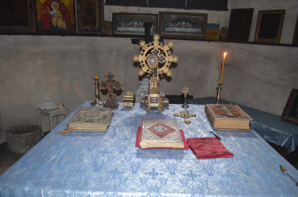 Ansamblul monumental „Adormirea Maicii Domnului”, parte a patrimoniului național, uneşte, în trup, catolicismul şi ortodoxia… Intrarea în curtea bisericii se face pe un drum îngust, prin partea de miazănoapte. Curtea, împrejmuită cu gard de ostrețe, desemnează un teren pe care au fost plantați arbori; intrarea se face prin partea de miazăzi…