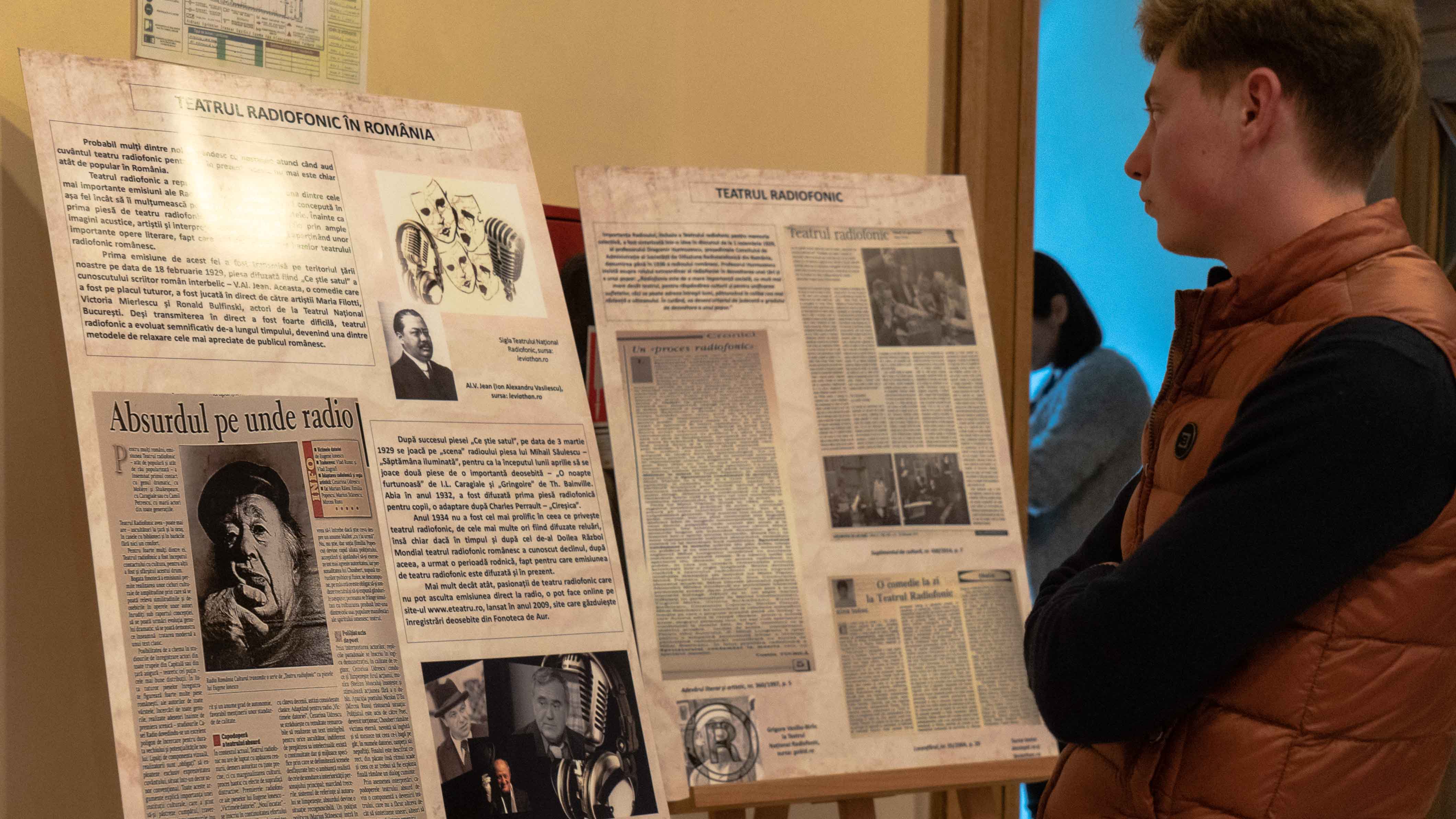 Expoziţia este întregită de colaje de fotografii şi articole însoțite de texte explicative, din diferite domenii de interes radiofonic, precum: istoria radioului, Radio Europa Liberă – Radioul în timpul comunismului, Radio România, Radio Moldova – Radio Iași, teatrul radiofonic.