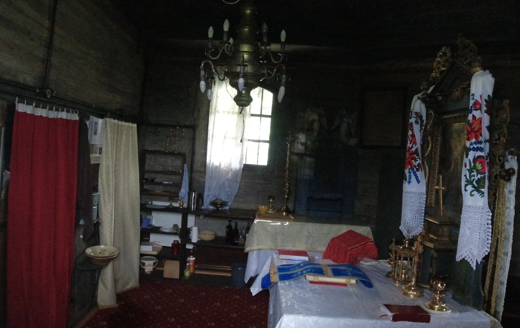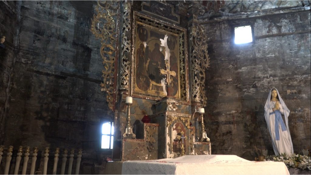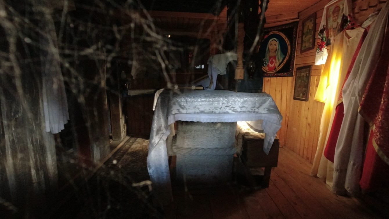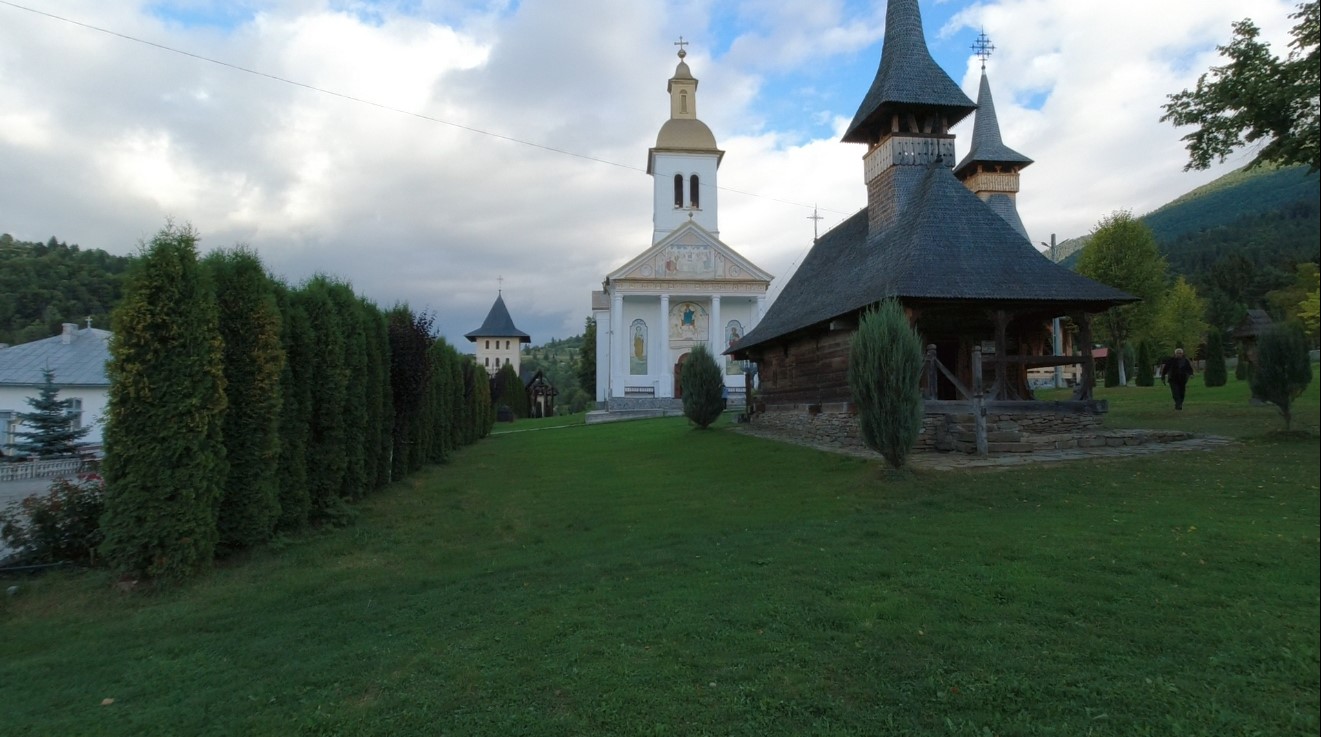 Biserica de lemn a Mănăstirii Moisei, monument istoric, singura din Maramureș care are altarul poligonal cu șase laturi exterioare, a fost construită, conform unor surse, fie în anul 1600[4], fie în 1599[5] sau 1672[6]… Lumina pătrunde sfios în biserica de lemn, graba și camera video nu au găsit valorile disponibile ale balansului de alb fluorescent (setare folosită în cazul surselor de lumină de tip neon, pentru a încălzi puțin temperatura culorilor), pictura murală din pronaos, naos și altar fiind degradată, păstrându-se doar pe tâmplă (iconostas, catapeteasmă)… Mănăstirea, pe ansamblul său, a reprezentat un centru cultural; în august 1911, era terminată construcția bisericii de piatră a noii mănăstiri, între 2008-2011 s-a construit turnul-clopotniță de la intrare (unde au fost așezate trei clopote), în perioada 2013-2015 a fost ridicat Centrul Cultural „Sfântul Mitropolit Sava Brancovici”…