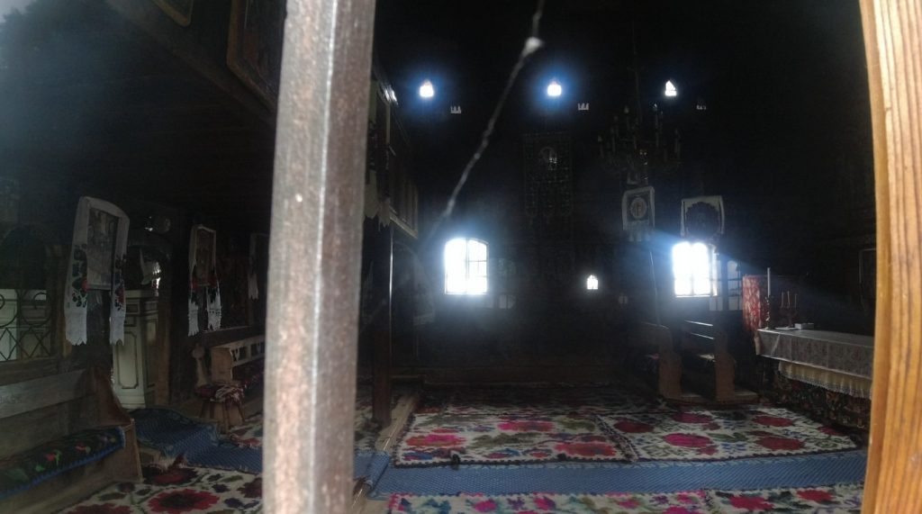 biserica din Rogoz este situată în „Țara Lăpușului”; oarecum răzleață față de grosul bisericilor maramureșene de lemn care au fost incluse (din decembrie 1999) patrimoniului mondial al UNESCO, fiind cea mai sudică din grup, ar fi fost ridicată, potrivit tradiției, în anul 1663, din două lemne uriașe (după ce tătarii trecuseră prin foc vechea biserică din sat); se distinge printr-un acoperiș asimetric și printr-o clopotniță alungită; exteriorul bisericii este bogat decorat: fațada sudică are în zona mediană motivul profilat al frânghiei, ușa de intrare în biserică are deschidere în acoladă și ancadrament decorat cu profil simplu, dublat de frânghie și de rozete; un tip de plan mai rar întâlnit – pronaos poligonal, cu acces pe sud, naos dreptunghiular și absida altarului în retragere, poligonală, cu șapte laturi; interiorul bisericii păstrează, în naos, o pictură realizată la 1785, cu scene din „Geneză” și din „ciclul Patimilor”, iar în pronaos – o captivantă punere în scenă a „Raiului” și „Iadului”… Conexiunea interior-exterior a făcut loc și unei imagini cu biserica nouă, dar noi și camerele video (re)simțeam tentația veșniciei