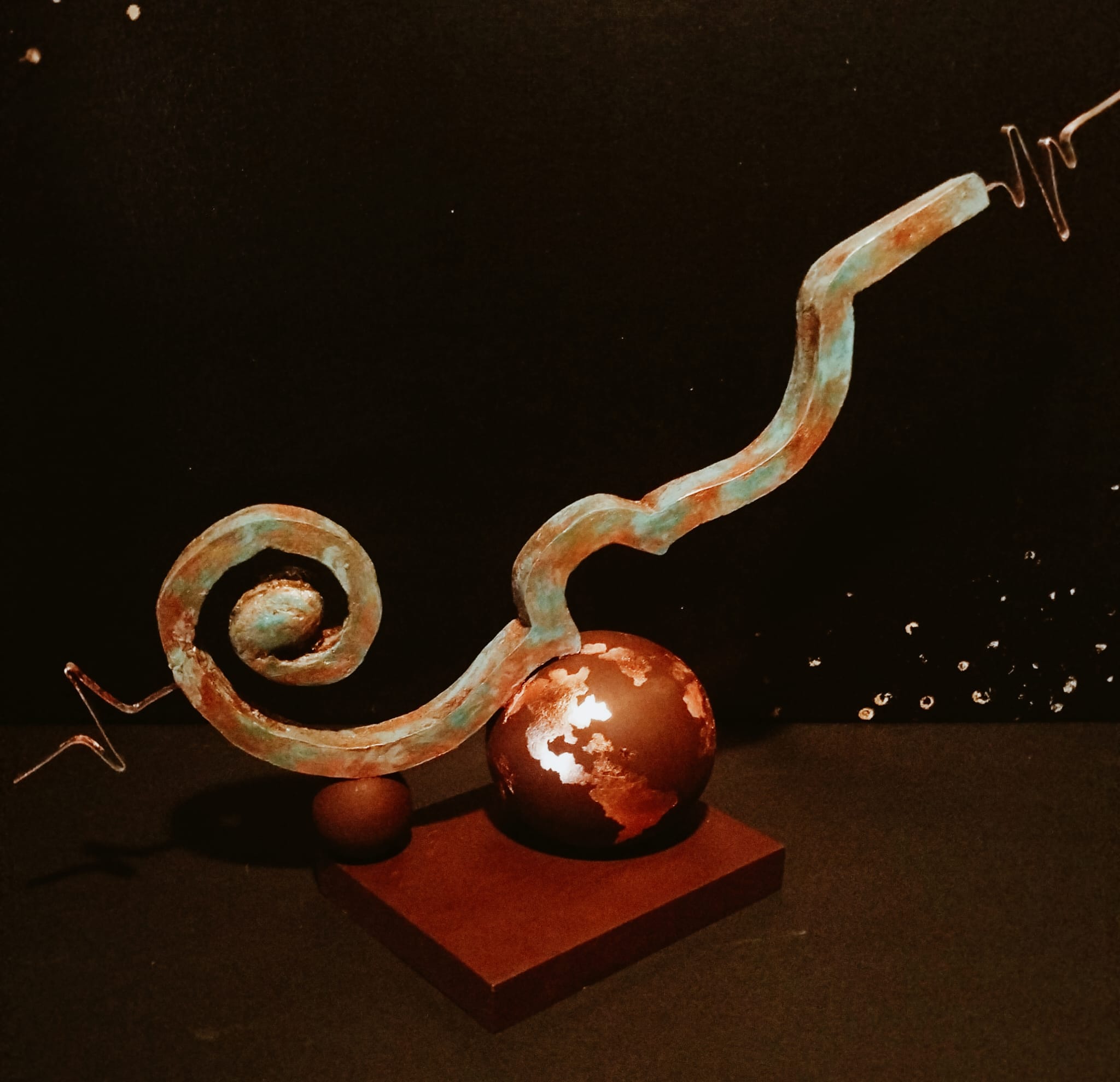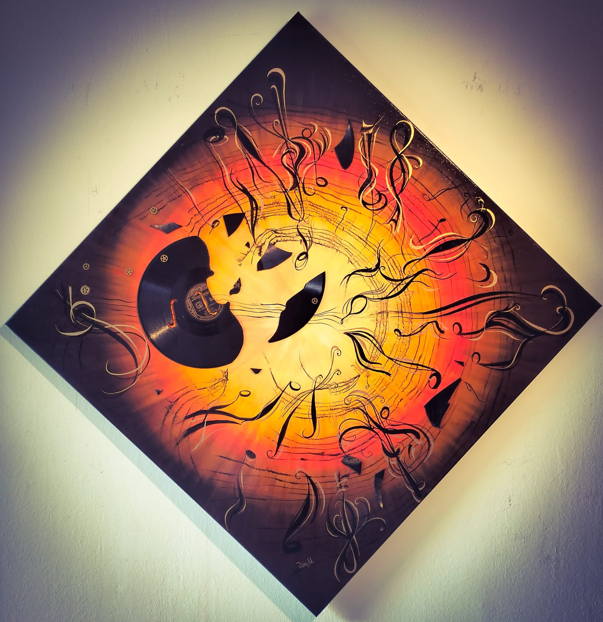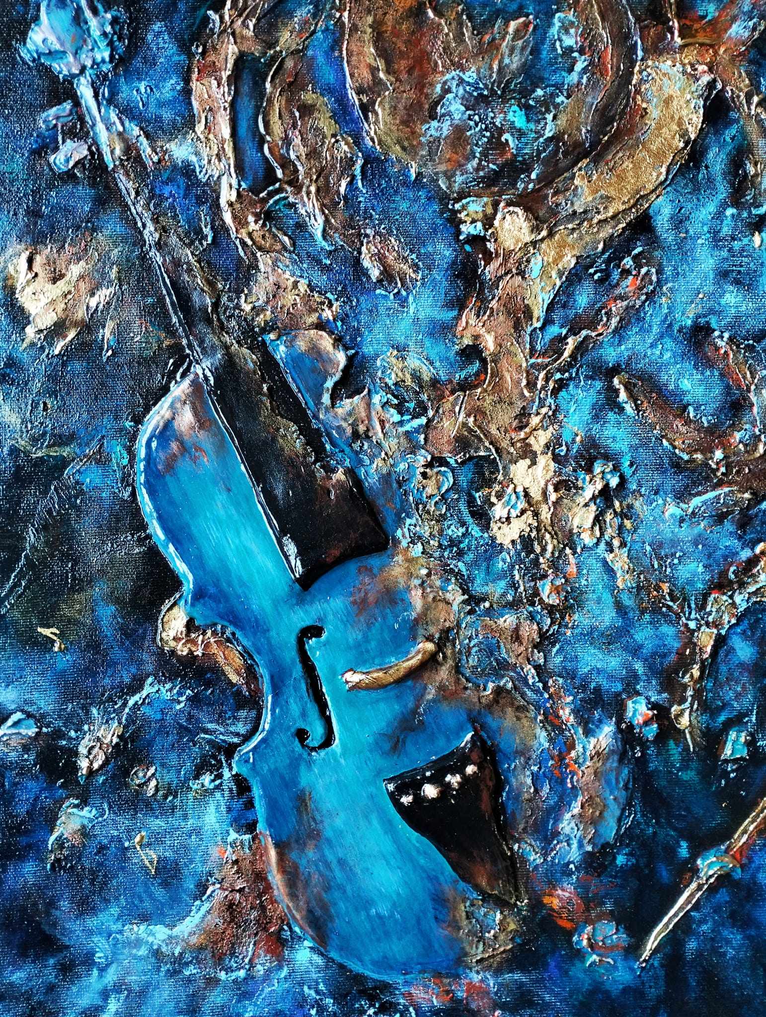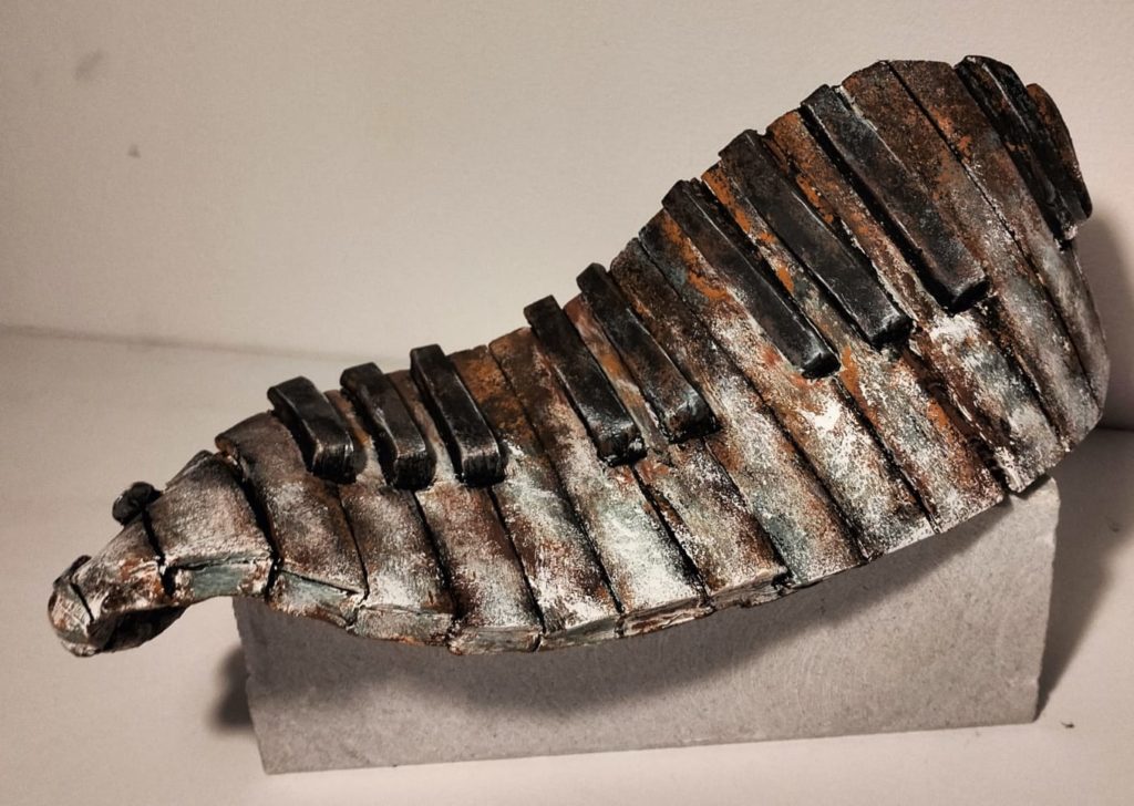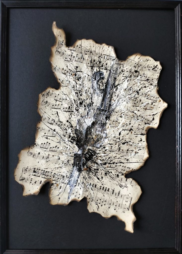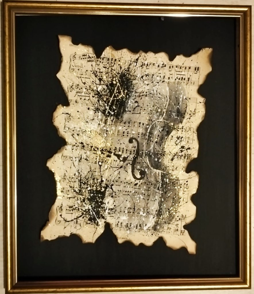 Expoziția reușește să ofere o conexiune între artă și muzică, propunând un dialog dinamic, inspirativ. Estetica multor instrumente muzicale le transformă pe acestea în opere de artă și iată că sunt acum integrate în spațiul plastic, devenind un duo vizual artistic, completându-se într-un mod armonios. Frumusețea și complexitatea muzicii, în general, fie ea clasică, jazz, blues, o simțim și prin intermediul culorilor și formelor, într-o redare modernă, contemporană. Aflate la granița dintre decorativ și figurativ, lucrările se impun prin expresivitate, prin complexitatea ideilor și conceptelor care reușesc să surprindă esența spiritului uman. Tehnicile la care apelează artista și materialele pe care le folosește întregesc conceptul modern al expoziției. De la hârtia arsă cu note muzicale, la aur lichid, la tehnica mixtă, ulei, acrilic, foița de aur sau argint. În ceea ce privește sculptura, artista se oprește și asupra unor materiale reciclabile pe lângă cele tradiționale: de la lemn, piatră, marmură, metal, lut la bucăți de sticlă, sârmă, polistiren, fermoare, rotițe de ceas, placă de vinil, aur și cupru lichid. Deși fragile, își spun povestea, fiecare în parte, pentru a se contopi într-un tot al sentimentelor, al trăirilor. Sculpturile ne poartă în pași de dans în timp și spațiu, dintr-un enigmatic trecut, la un prezent de esență sau la un viitor exploziv: de la Big Bang, la eclipse, la secrete de piramide, la învăluiri de elemente de pământ. Toate prind formă și volum, culoare și vibrație oferind un vizual plin de ritm și armonie. Graficele surprind prin subtilitate și rafinament, în timp ce picturile devin un sonor cromatic de impact.