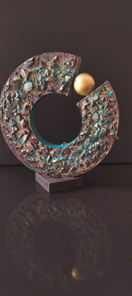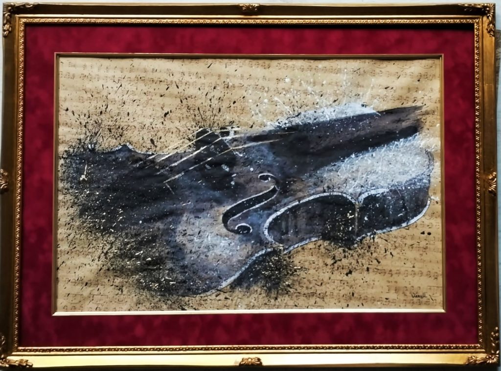 Cele 77 de lucrări din expoziția prezentă ne relevă un spirit inovator, profund sensibil și delicat, dar mai ales dedicat frumosului, sentimentalului cromatic care devine de o muzicalitate aparte. La 8 ani de la prima sa personală, rămâne fidelă aceleiași teme: muzica, pentru a o completa, întregi cu alte două dimensiuni: timpul și spațiul, deseori întâlnite în lucrările prezentate de artistă în expozițiile colective. O completare firească. Imaginație, creativitate, expresivitate în compoziții complexe, de la grafică la pictură la sculptură, reușind să transmită idei și sentimente unice, printr-o îndrăzneață folosire a diverselor tehnici, a diferitelor materiale, în varii spații devenite vibrante și profunde. Asistăm la un concert vizual în care se desfășoară, într-o orchestrație spațială și de timp, aproape toate instrumentele muzicale. În pași spre o lume frumoasă, pătrundem înt-un univers al muzicii și al picturalului. Vibrații divine, ne poartă cu grație și tandrețe în alte dimensiuni ale timpului, evadând cu eleganță din realitate, fără inhibiții, în sunete de adâncuri și în transcendențe pline de armonie, pentru a ne trezi învăluiți în altitudini de sensibilitate și gravitate. O lume a sunetelor care ne invită să le simțim, să le atingem cu sufletul, în armonii cromatice elegante. Instrumentele devin cromatice iar culorile devin sunete. În acompaniamentul de atitudine al violei, ne seduce, în timbrele de alto sau tenor, saxofonul, pentru a ne bucura de vibrațiile cromatice terestre și cosmice ale naiului. Inspirațional și poetic, în șoapte tăcute de liră, ne pierdem printre vise, spre nemurire, în intensități sonore de pian. Virtuoase vibrări, când strălucitoare când meditative, de violoncel, ne fac să poposim în atmosfere cu sonorități grave, fluide și pătrunzătoare, ale divinei harpe. Duioase sunete vechi de gramofon, printre umbrele melodioase pline de rafinament ale unei viori, ne poartă spre solemnități în sunet de corn, pentru a poposi cu sensibilitate și profunzime în acorduri de contrabas. Vibrații amplificate în frecvențe de chitară, urmează unor pași dinamici de tobe sau unor gravități de trompetă, care revarsă tonuri și ritmuri de culoare.
