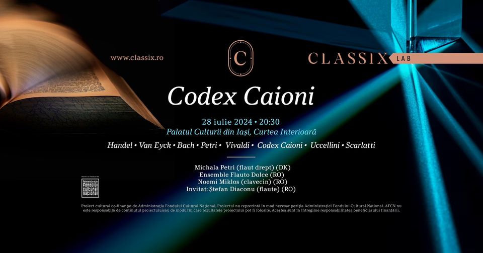 28 iulie, ora 20.30: la Palatul Culturii din Iași, Curtea Interioară •https://bit.ly/CodexCaioni_IS