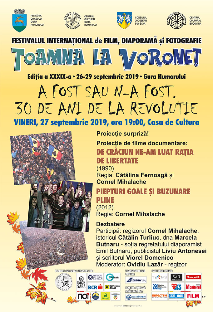Parteneri: Uniunea Cineaștilor din România, Institutul Cultural Român, DACIN SARA, Banca Comercială, Raiffeisein Bank, Banca Transilvania, Tarom, KODAK, S.C. Cotnari, Auto Mitric Suceava