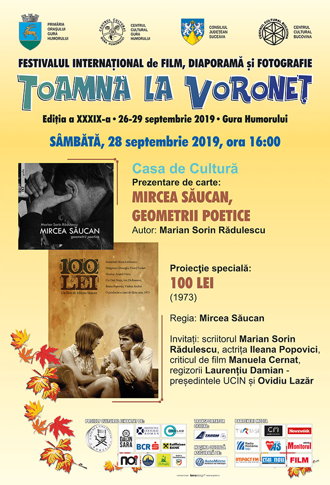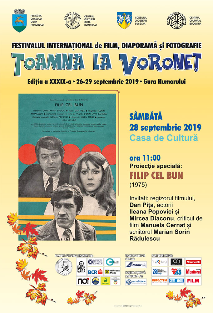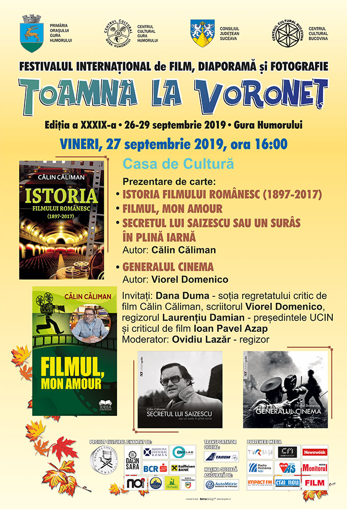 Ediția a XXXIX-a a Festivalului Internațional de Film, Diaporamă și FotografieToamna la Voroneț” își deschide porțile anul acesta în data de 25 septembrie, invitând publicul spectator la suita de evenimente de ținută: vizionarea filmelor din competiție (și a altora), documentare sau lungmetraje de ficțiune, vernisaj expoziție de fotografie, prezentare de carte, dezbatere, proiecție în aer liber, proiecții speciale a unor filme consacrate în prezența regizorilor și actorilor din rolurile principale, sesiune Q&A cu participanții la festival.