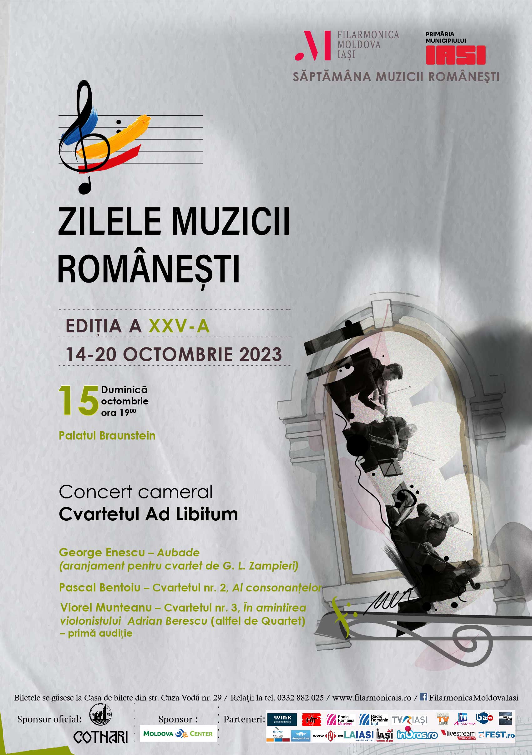 În plus, ne-am angajat să promovăm și să onorăm memoria muzicianului și prietenului nostru drag, violonistul Adrian Berescu. Cvartetul „Ad libitum” va susține în primă audiție Cvartetul nr. 3 de Viorel Munteanu, dedicat memoriei sale. Acest moment special va fi o ocazie de a reflecta asupra impactului muzical și uman al lui Adrian și de a celebra contribuția sa inestimabilă la scena muzicală românească. Programul va mai cuprinde „Aubade” de George Enescu, în aranjament pentru cvartet de coarde de G. I. Zampieri și „Cvartetul Consonanțelor” de Pascal Bentoiu.