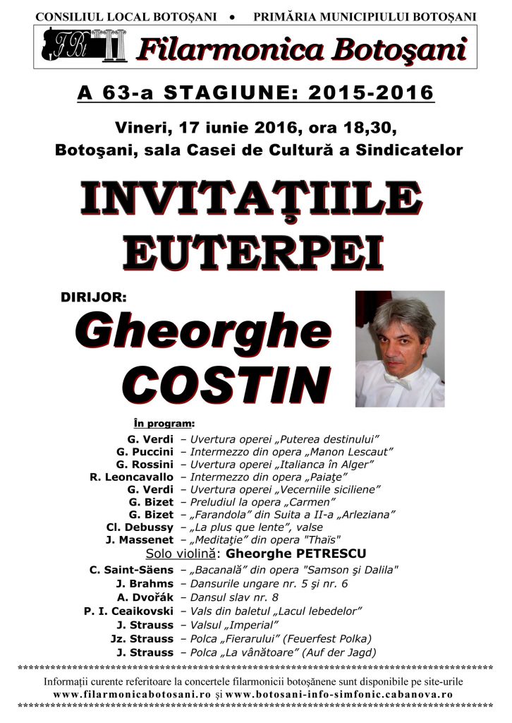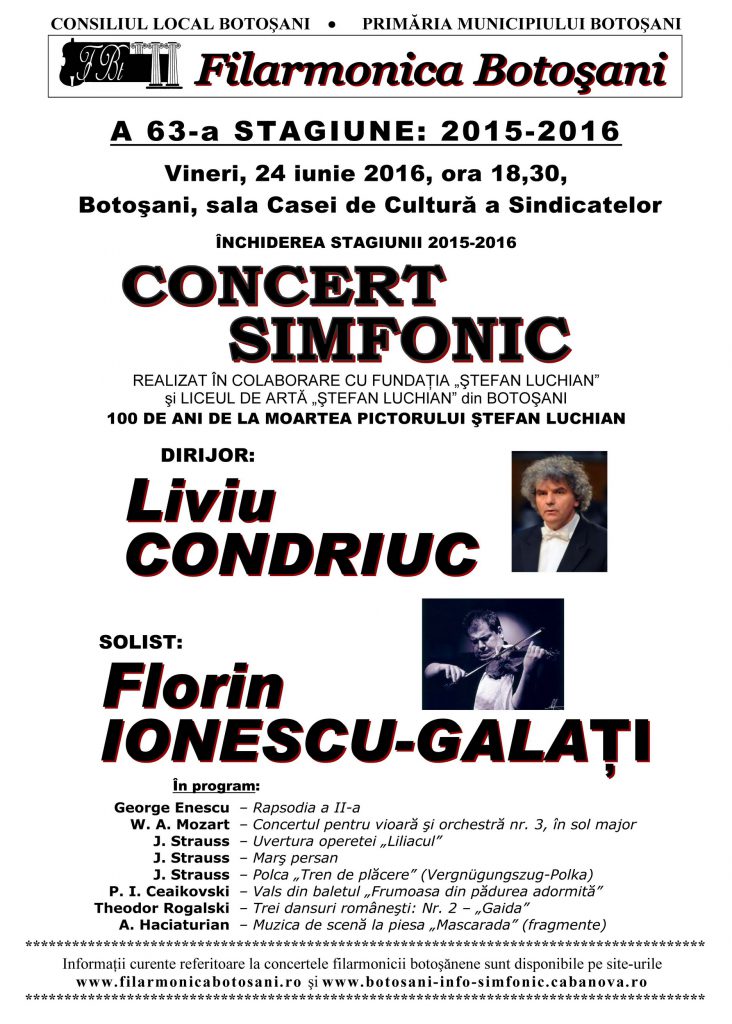 Final de stagiune la Filarmonica Botoșani cu Gheorghe Costin, Florin Ionescu-Galați, Liviu Condriuc