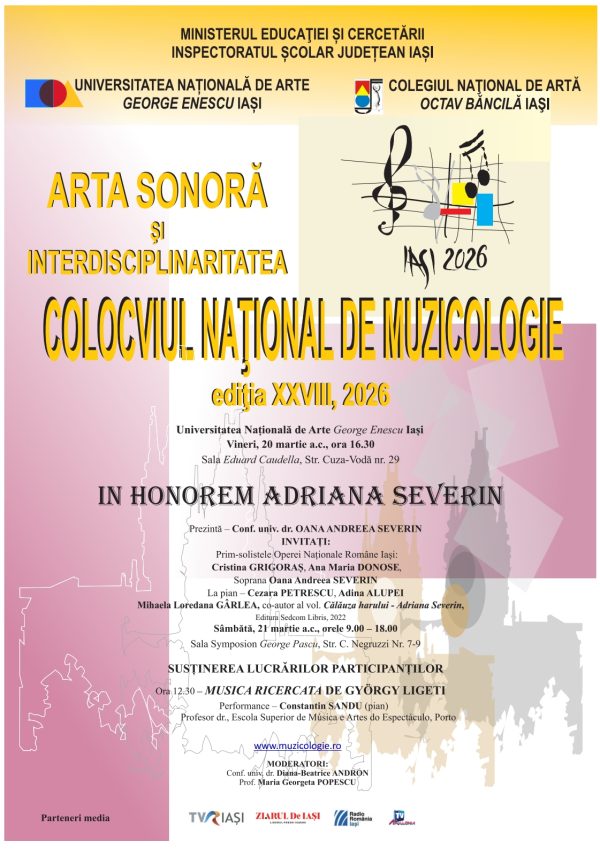 Universitatea Națională de Arte „George Enescu” organizează COLOCVIUL NAŢIONAL DE MUZICOLOGIE, ediția a XXVIII-a, în zilele de 20 și 21 martie 2026