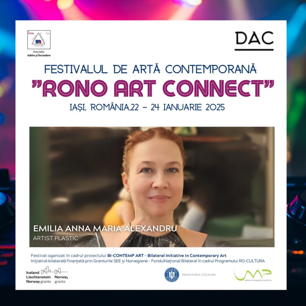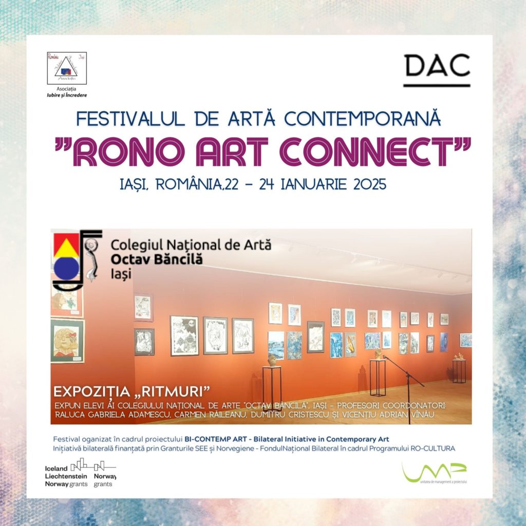 𝐅𝐄𝐒𝐓𝐈𝐕𝐀𝐋𝐔𝐋 𝐃𝐄 𝐀𝐑𝐓Ă 𝐂𝐎𝐍𝐓𝐄𝐌𝐏𝐎𝐑𝐀𝐍Ă ”𝐑𝐎𝐍𝐎 𝐀𝐑𝐓 𝐂𝐎𝐍𝐍𝐄𝐂𝐓” este organizat în cadrul proiectului “BI-CONTEMP ART – Bilateral Initiative in Contemporary Art”, Inițiativă bilaterală finanțată prin Granturile SEE și Norvegiene – Fondul Naţional Bilateral în cadrul Programului RO-CULTURA;