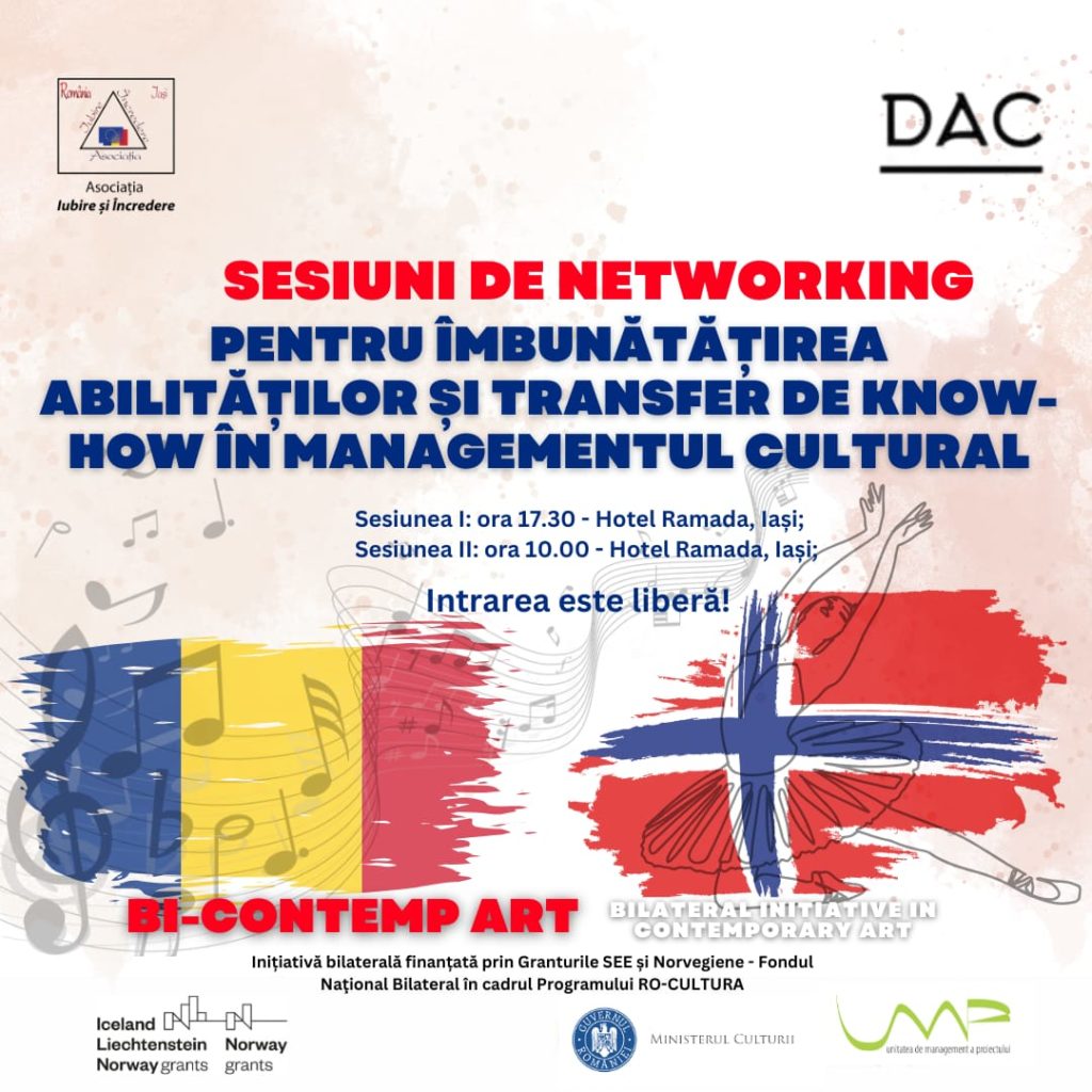21 ianuarie 𝐒𝐞𝐬𝐢𝐮𝐧𝐢 𝐝𝐞 𝐍𝐞𝐭𝐰𝐨𝐫𝐤𝐢𝐧𝐠 𝐩𝐞𝐧𝐭𝐫𝐮 𝐌𝐚𝐧𝐚𝐠𝐞𝐦𝐞𝐧𝐭 𝐂𝐮𝐥𝐭𝐮𝐫𝐚𝐥 organizate în cadrul proiectului “BI-CONTEMP ART – Bilateral Initiative in Contemporary Art”, Inițiativă bilaterală finanțată prin Granturile SEE și Norvegiene – Fondul Naţional Bilateral în cadrul Programului RO-CULTURA!
