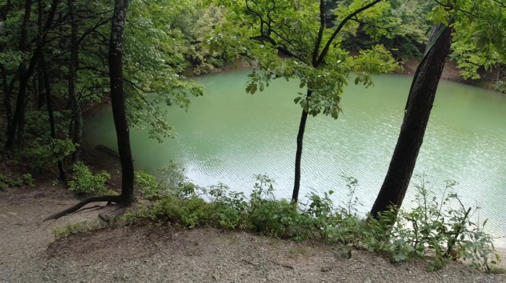 Este unic prin origine (prăbușirea, între anii 1919-1920, a unei galerii de mină/vechi lucrări miniere de exploatare de pe filonul „Domnișoara”) și prin compoziția chimică a apei (datorită solubilizării compușilor sulfuroși, apa poate avea culoarea verde, cu reflexe de smarald)…