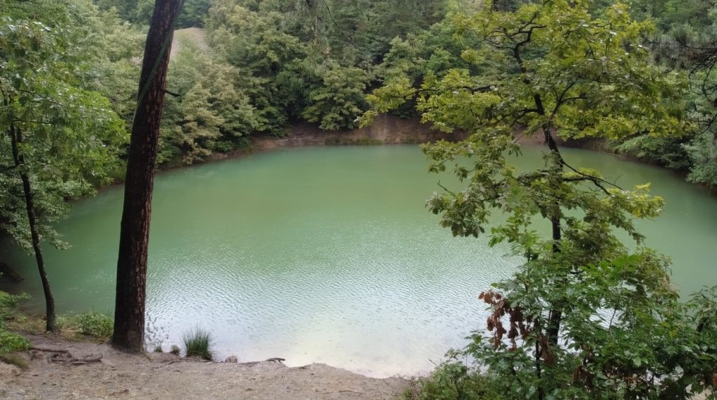 Este unic prin origine (prăbușirea, între anii 1919-1920, a unei galerii de mină/vechi lucrări miniere de exploatare de pe filonul „Domnișoara”) și prin compoziția chimică a apei (datorită solubilizării compușilor sulfuroși, apa poate avea culoarea verde, cu reflexe de smarald)…