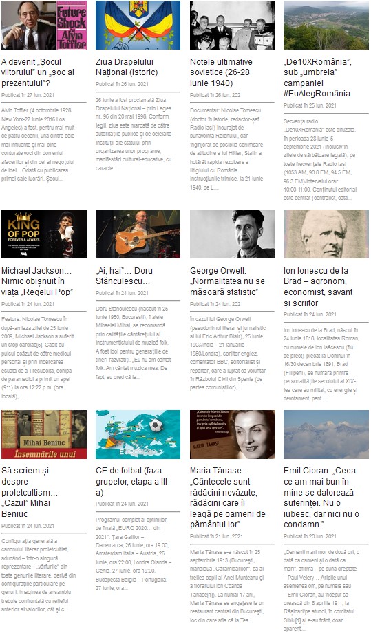Dacă vreți să le parcurgeți, iată „traseul”: www.radioiasi.ro + intrare pe primul articol care vă stă la îndemână, sub titlul ales de mine click pe unul dintre cuvintele-cheie/Nicolae Tomescu/ + apare ETICHETA (sunt 234 de „poziții”, echivalentul a 2.800 de încercări jurnalistice/din 2015 încoace)…