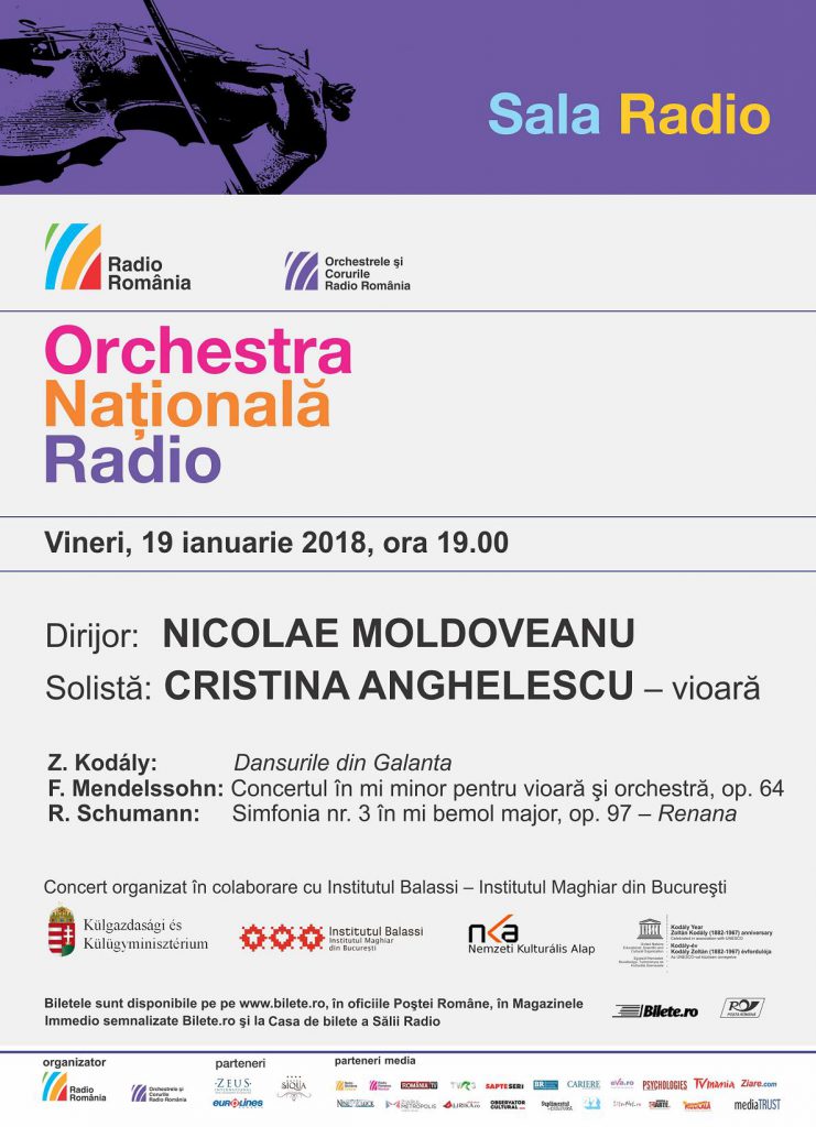 Dirijorul Nicolae Moldoveanu se va afla la pupitrul Orchestrei Naţionale Radio vineri, 19 ianuarie 2008, ora 19:00, la Sala Radio, într-un concert pe al cărui afiş se vor regăsi Dansurile din Galanta, de Z. Kodály, Concertul în mi minor pentru vioară şi orchestră, op. 64, de F. Mendelssohn, şi Simfonia nr. 3 în mi bemol major, op. 97 – Renana, de R. Schumann.